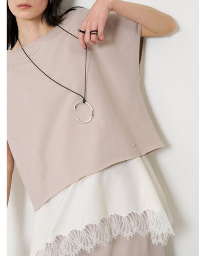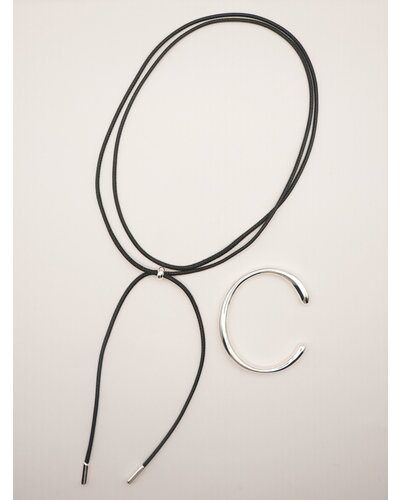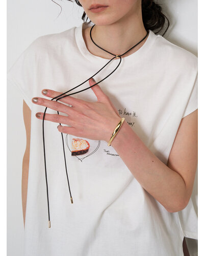 存在感のあるニュアンスCモチーフがぶら下がったコードネックレスは、「バングル」「チョーカーネックレス」としてそれぞれ単品でも着用できるアイテムとなっております。