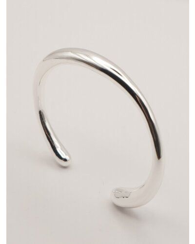 美しい曲線で描かれたコンパクトなC型バングルは、手首にフィットする納まりのいいミニマルなデザインです。