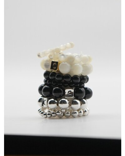 カラーは、オフホワイト(マザーオブパール)、ブラック(オニキス)、シルバー(真鍮/メッキ)の3色をご用意いたしました。