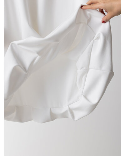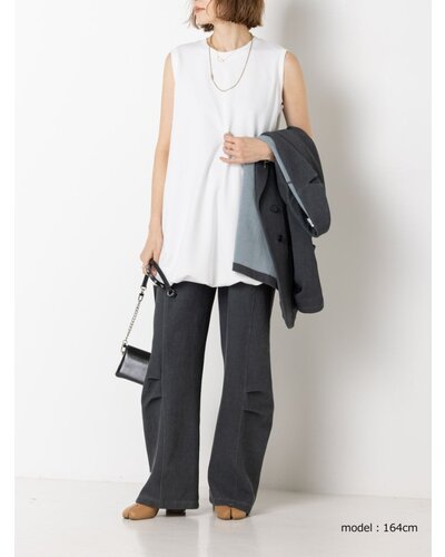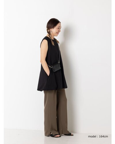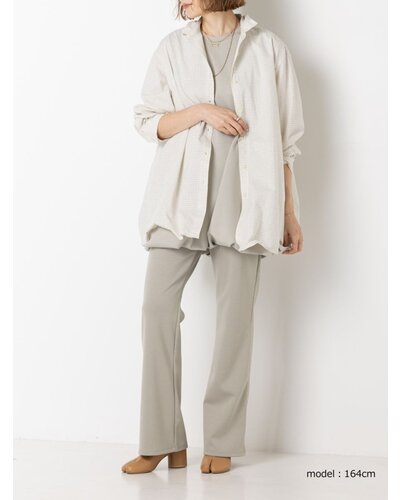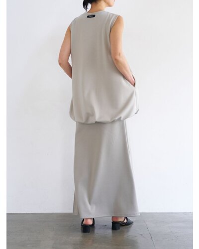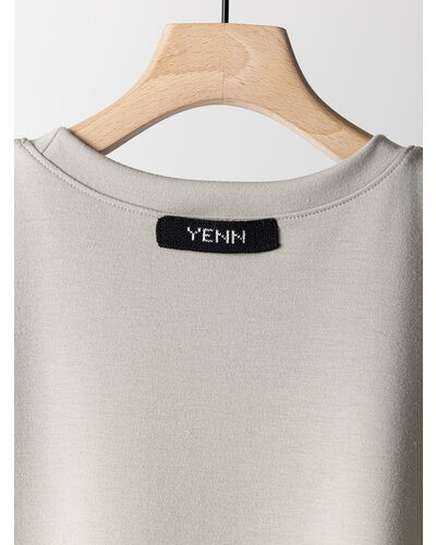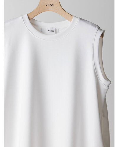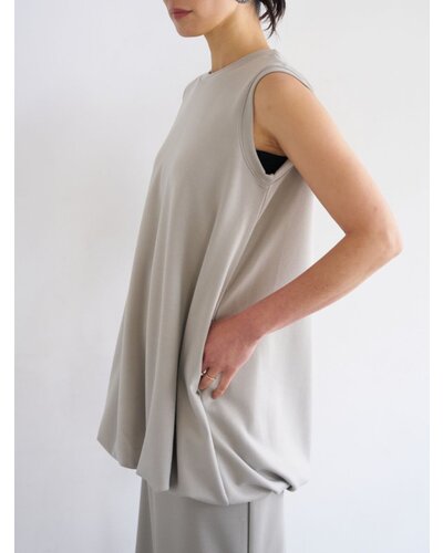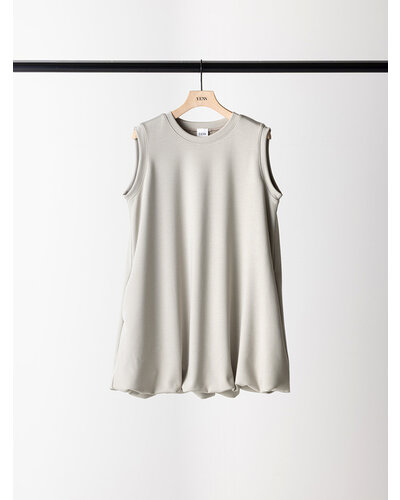 定番のレギンスと同素材の生地を使用した、チュニック丈トップスです。 ほどよい厚みと弾力のあるダブルジャージー素材はイージーながらもきれいな印象を与えてくれる大人カジュアルにぴったりな素材です。 夏でも暑くないないよう極薄のメッシュ生地を裏地に採用。 裏地で裾を吊って作るバルーンシルエットはふんわりと柔らかい女性らしさをプラスします。 お尻の隠れるチュニック丈で、ウエスト・お腹まわりなど、気になる部分を自然に隠してくれるので、細身パンツやタイトなシルエットのスカートともバランス良く着こなしていただけます。 脇にはシームPKを採用。 後衿ぐりに施した“YENN”ロゴテープもポイントです。