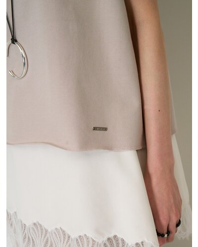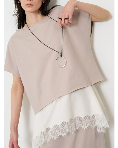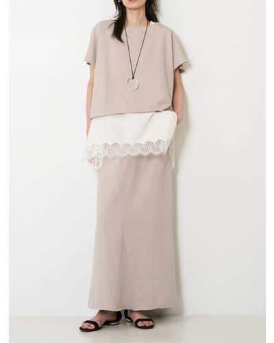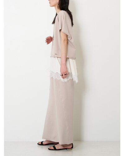 ゆとりのあるボックスシルエットに、肩を自然に覆うフレンチスリーブ風のデザインで気になる二の腕をさりげなくカバーしつつ、抜け感のある軽やかなバランスに仕上げています。