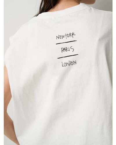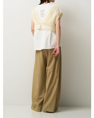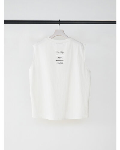 程よくゆとりのあるボックスシルエットで、肩まわりはすっきりとしたノースリーブ仕様。
