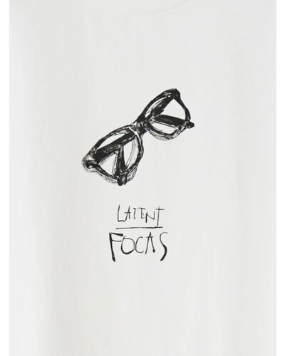 フロント中央には、ラフなタッチで描かれたアイウェアのイラストと「”LATENT FOCAS”=潜在的な焦点/まだ定まっていない意識」のロゴ。