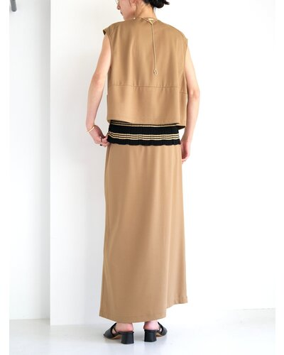 同素材のスカートと合わせると、抜け感がありつつ女性らしい、大人なカットソーセットアップが完成。