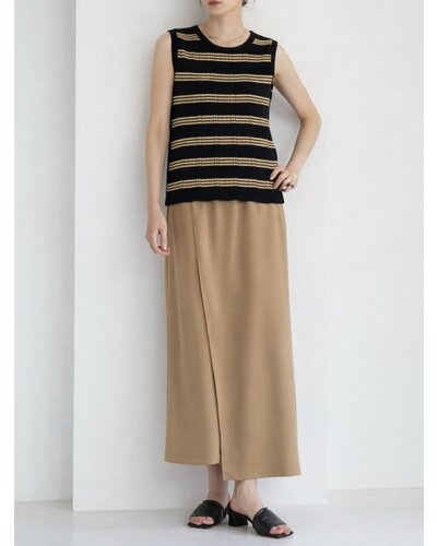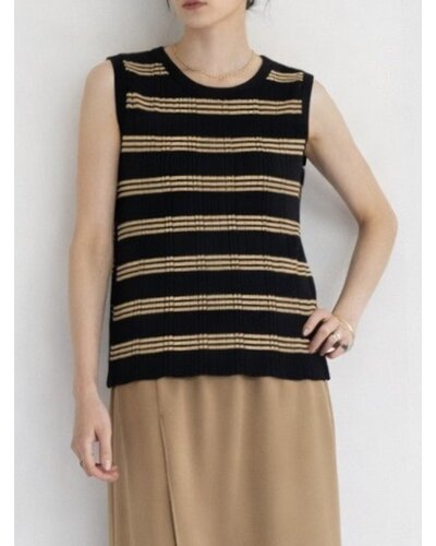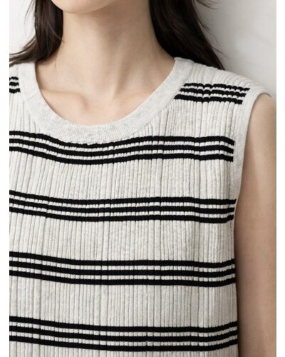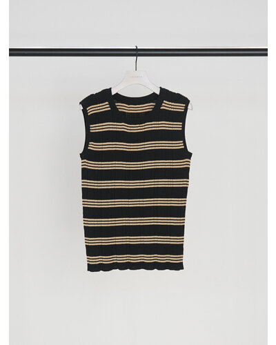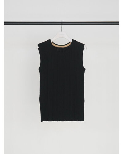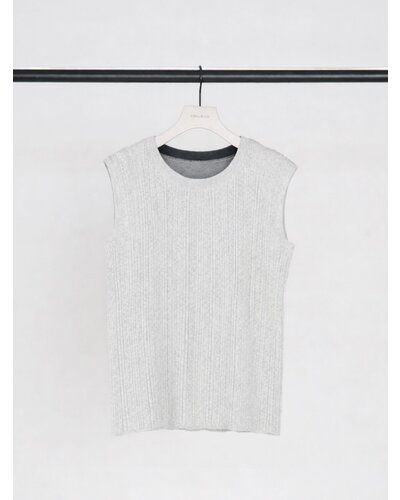 16ゲージで丁寧に編み立てた、ミニマルながらも奥行きのあるランダムリブニットタンクトップ。