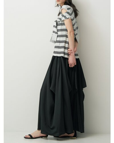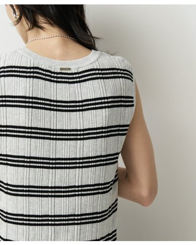 リズミカルな細ピッチボーダー2色は、スタイリングのアクセントにもおすすめ。
