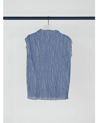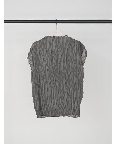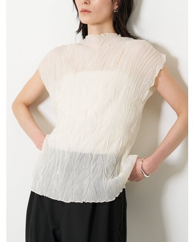 繊細なシワ加工を全面に施したシアー素材が印象的なハイネックトップス。