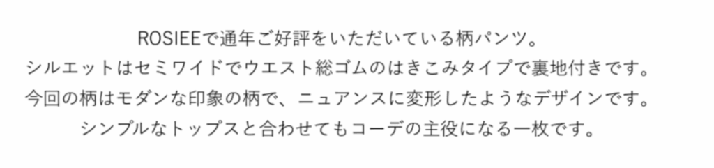 ニュアンスモダン柄パンツ【納期4月下旬頃】 ¥16,000 ニュアンスモダン柄パンツ【納期4月下旬頃】 【品番】R833216【プライス】¥16,000【サイズ】着丈99cm【カラー】オフホワイト、ブラック、ブルー【素材】ポリエステル 100%裏地 ポリエステル 100% 【ブランド】Rosiee 2026年3月13日 投稿先 Rosiee 2026summer お問い合わせは下記LINEまで ← 前ページ 次ページ →