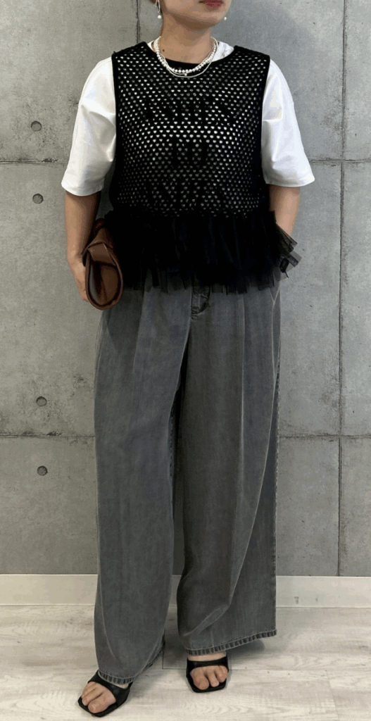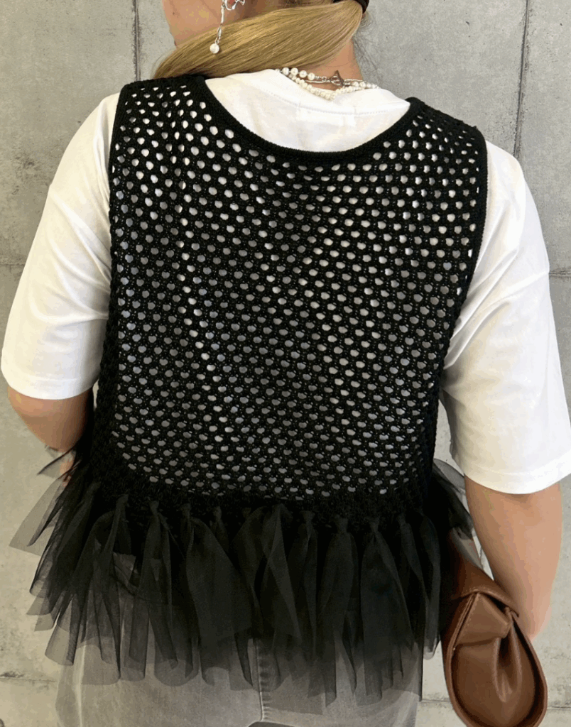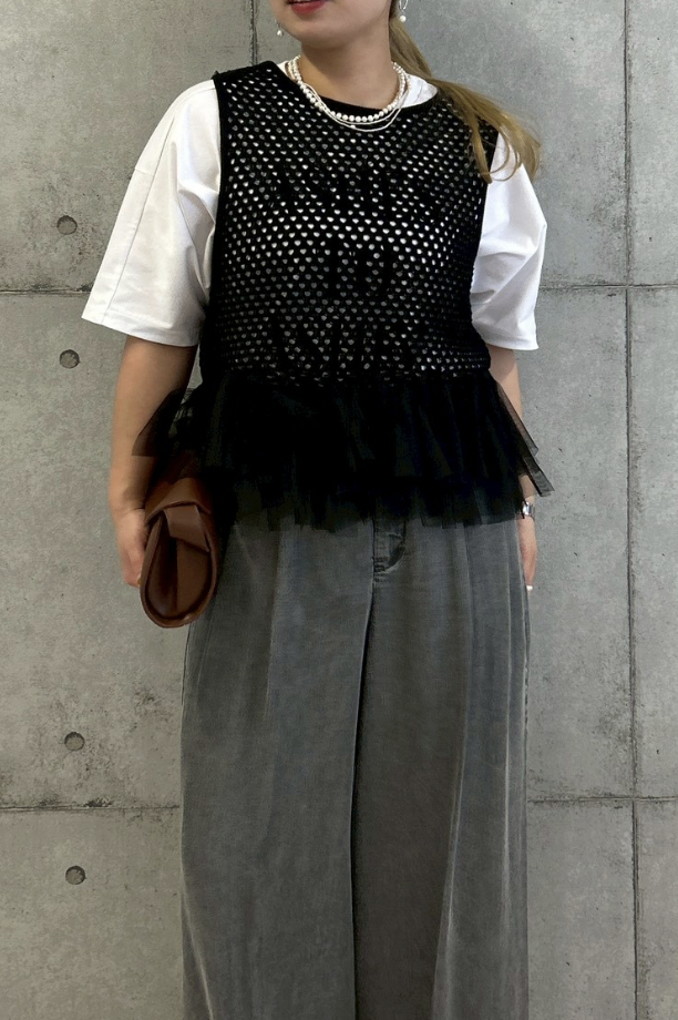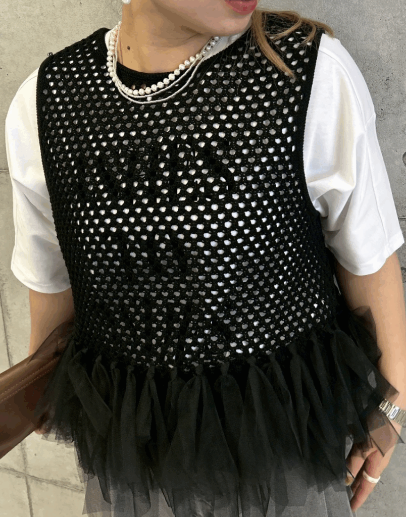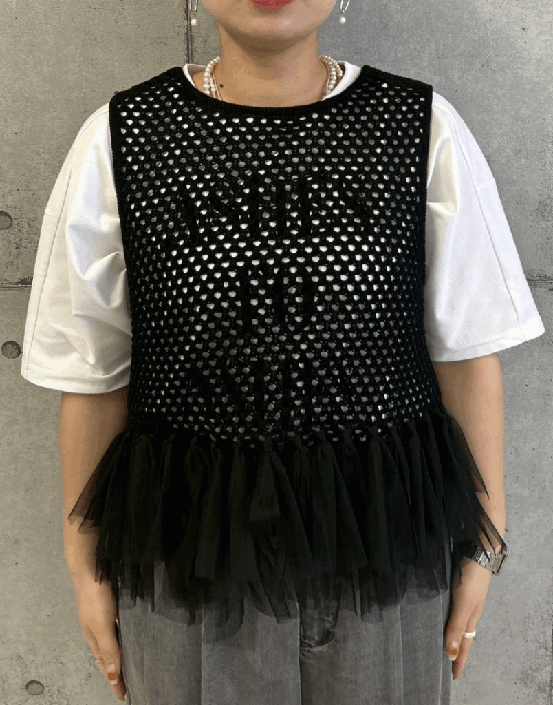 裾チュールメッシュニットベスト【納期5月中旬頃】