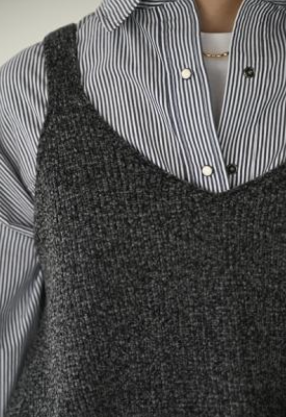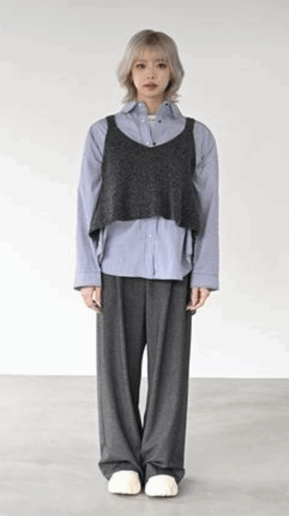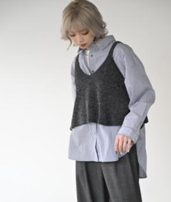 トップスに重ねるだけで印象が変わります。短めの丈感でバランスが取りやすく、秋口はTシャツやシャツの上にレ