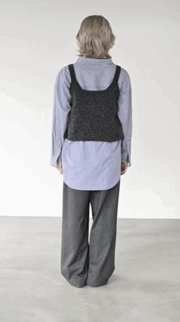 イヤードして軽やかなスタイリングに。裾に向かって広がるAラインシルエットが自然に体型をカバーし、柔らかな表