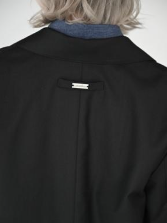 トライプの裏地がさりげないアクセントに。前後差をつけた着丈が動きを生み、デニムやスウェットと合わせても自然にまとまり