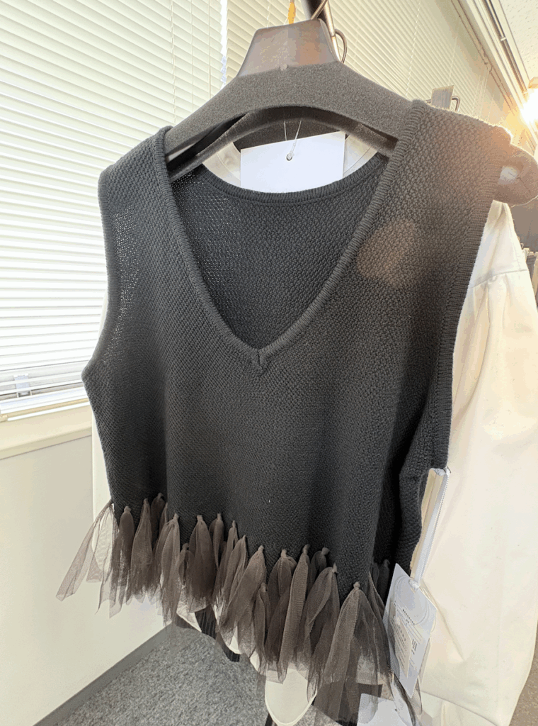 2WAY裾チュールベスト【納期9月上旬頃】 ¥14,000 【品番】M66060KR【プライス】¥14,000【カラー】グレー、グリーン、ブラック 2026年3月19日 投稿先 RESPI&Premi 2026AW お問い合わせは下記LINEまで ← 前ページ 次ページ →