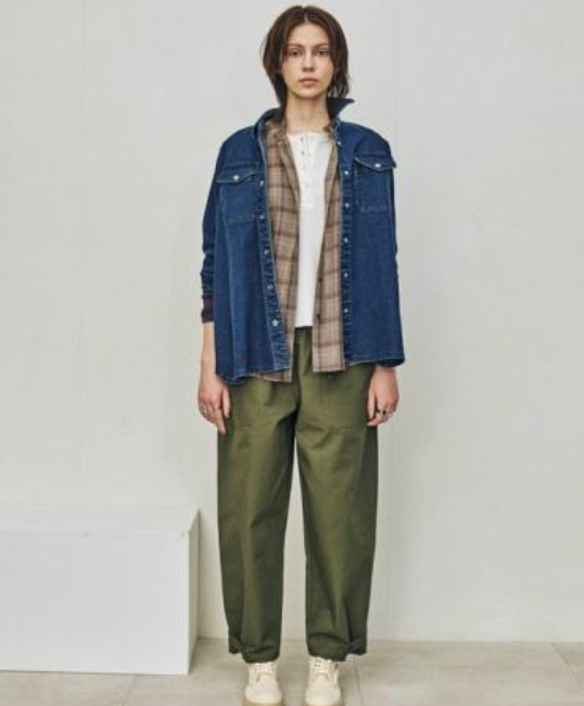 いを重ねました。柔らかさを備えたストレッチデニムが、動きやすさと品のある落ち感を両立します。大胆に前後差