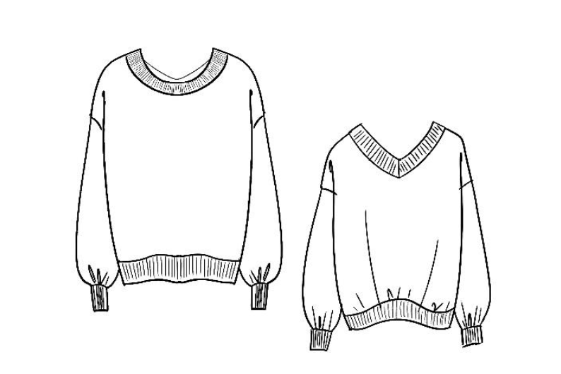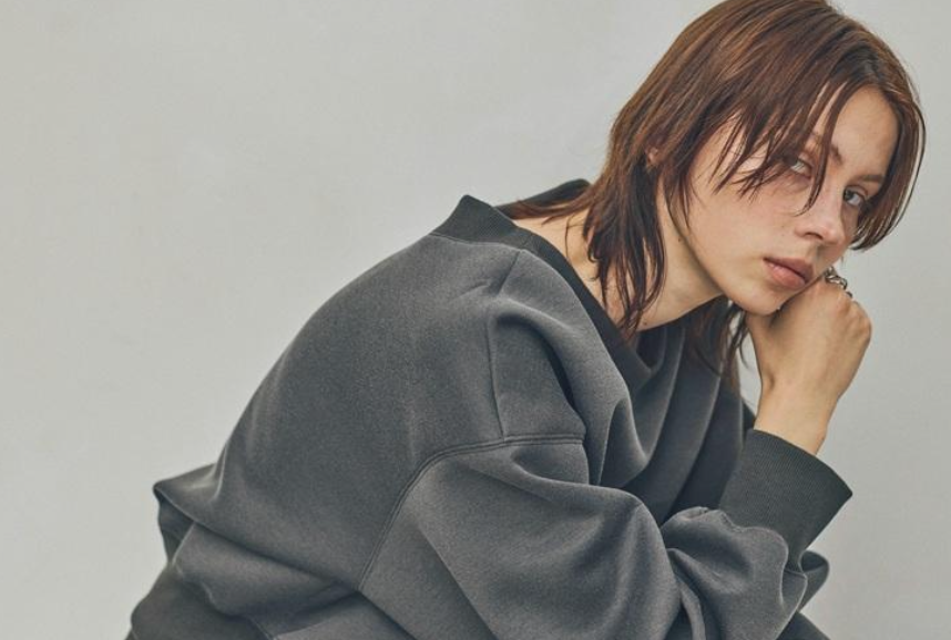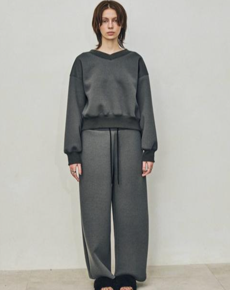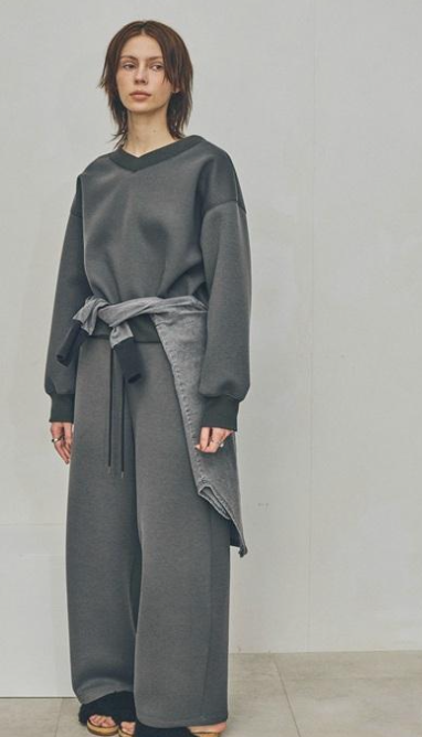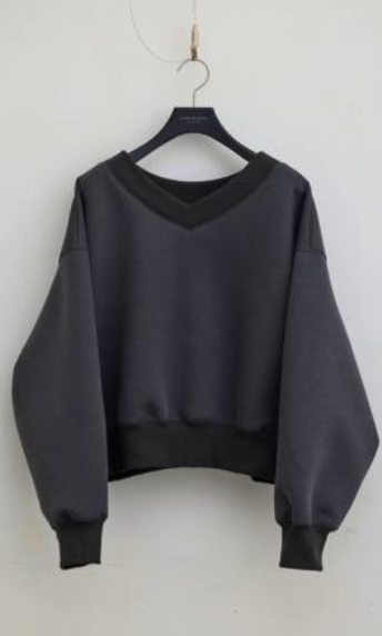 る素材が立体的なボリュームを描き、身体を包みながらも輪郭は端正に。Vネックとクルーネックの前後着用が可能