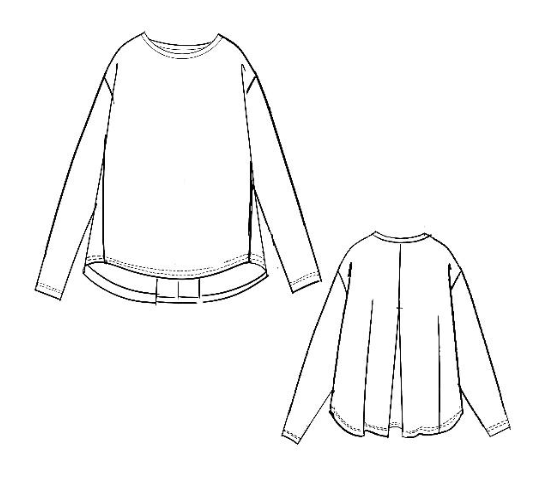 影を描きます。後ろ身頃にはボックスタックを施し、後ろ下がりのラインを美しく構築。シンプルでありながら、後