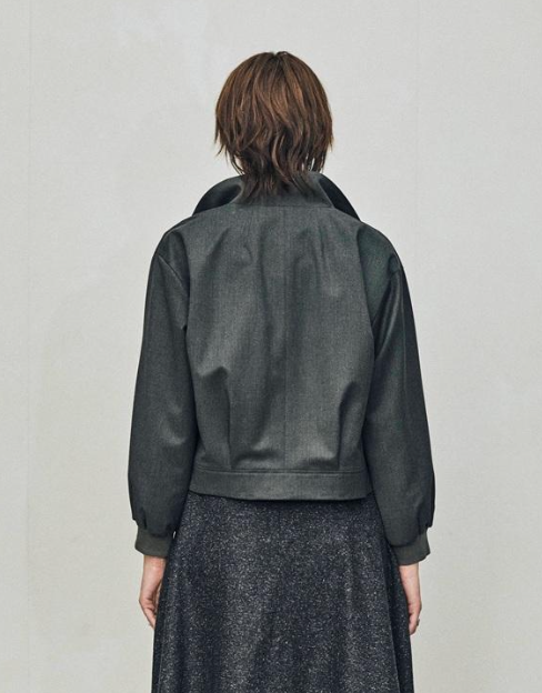 ショート丈のコンパクトなバランスとふんわりとした袖で女性らしい印象に仕上げました。後ろ裾に施したタック