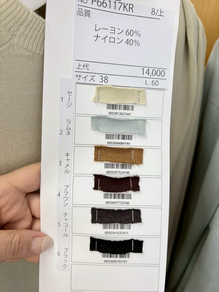 セージ、ラムネ、キャメル、ブラウン、チャコール、ブラック