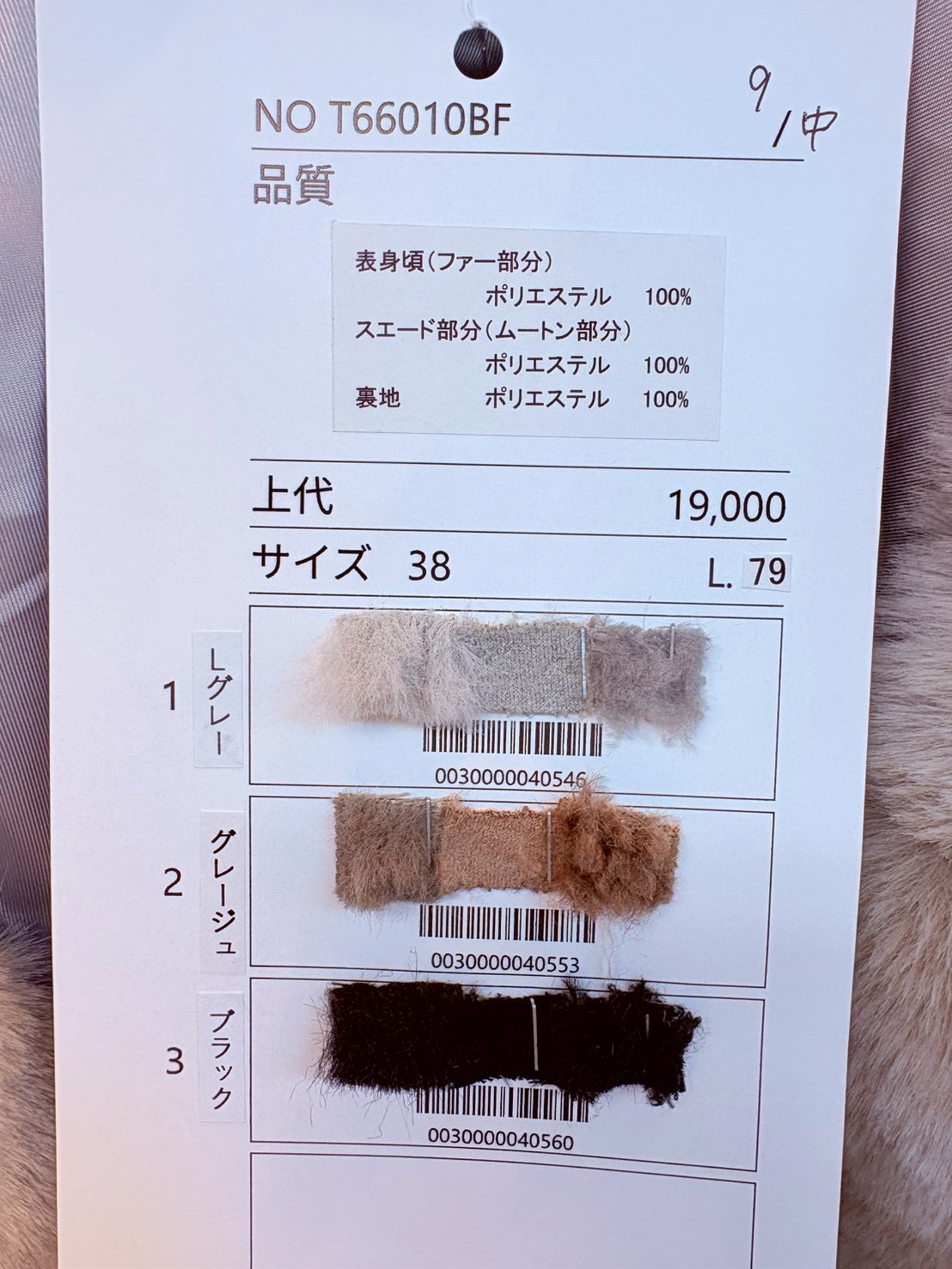 表見頃(ファー部分) ポリエステル 100%