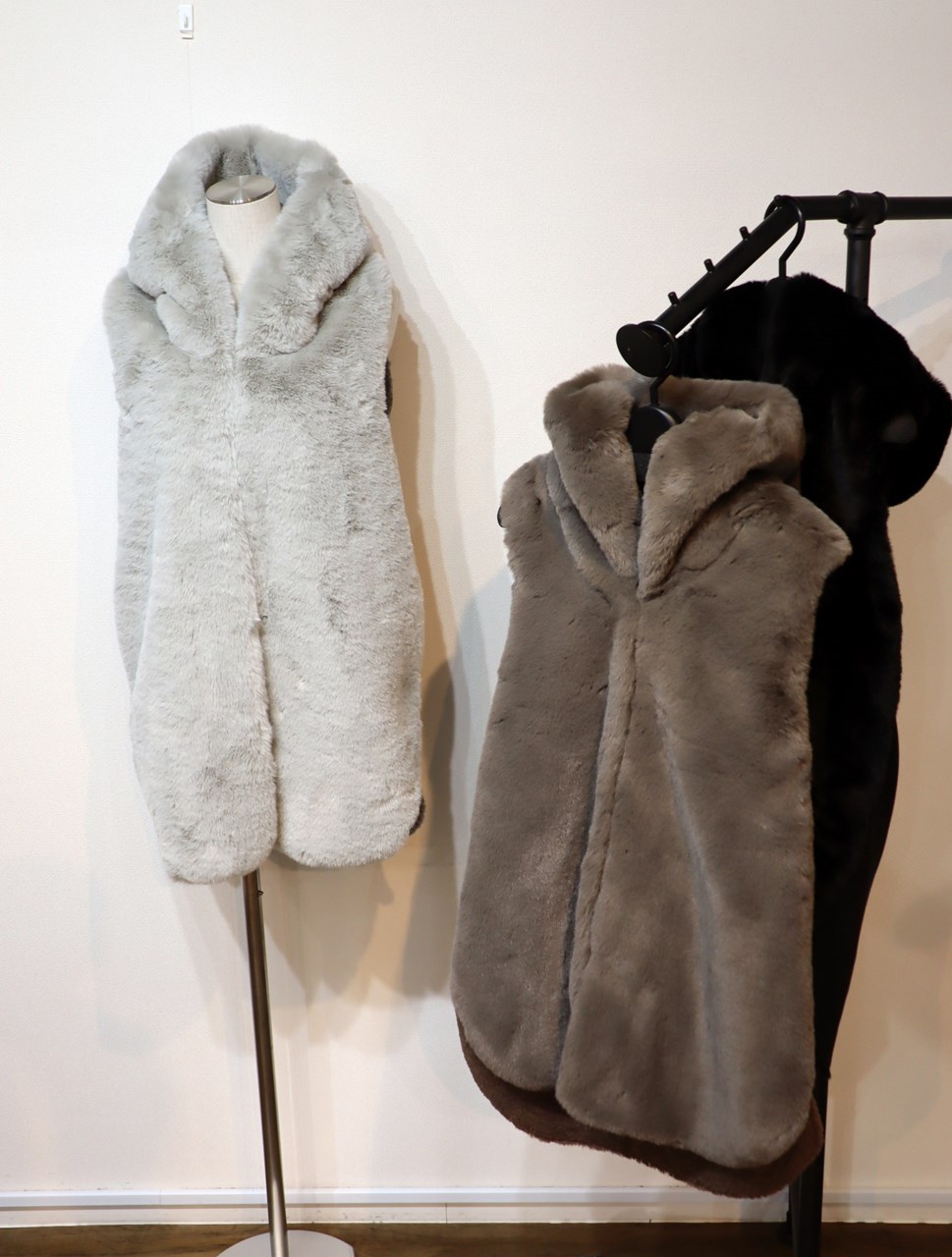 ムートンファーフード付ベスト