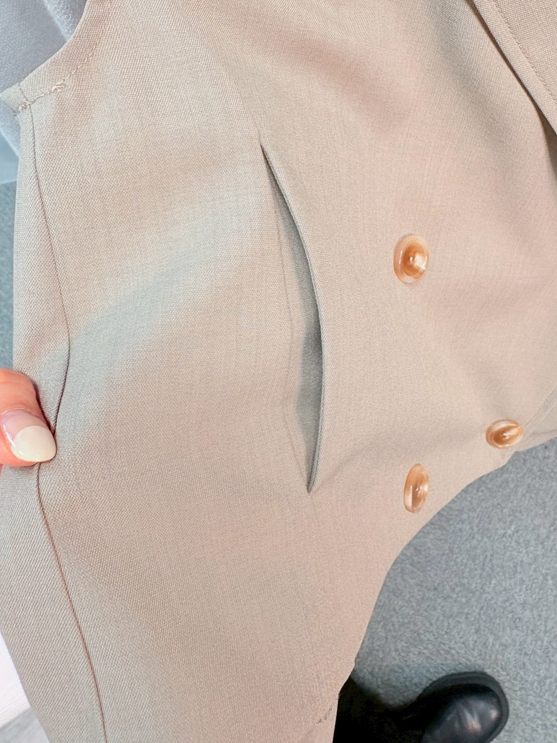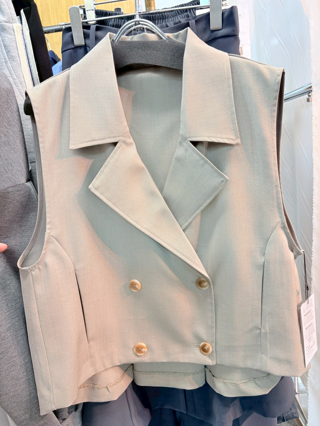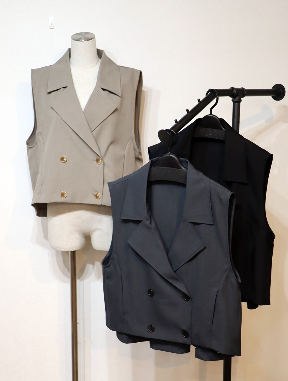 テーラードダブルベスト【納期7月下旬】 テーラードダブルベスト 【品番】T66055TO ¥15,000 【サイズ】サイズ 38着丈 ネックポイント~前52/後60 【素材】ポリエステル 100% 【カラー】グレージュネイビーブラック 【ブランド】TOLNERA 2026年4月10日 投稿先 tolnera 2026 autmun お問い合わせは下記LINEまで ← 前ページ 次ページ →