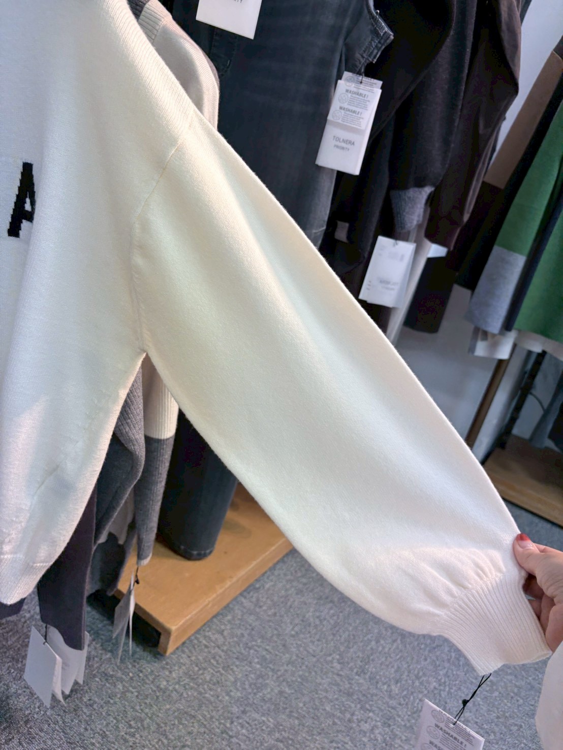 MLURAロゴニット【納期9月中旬】 MLURAロゴニット 【品番】T66075KR ¥9,900 【サイズ】サイズ 38着丈 前58/後60 【素材】レーヨン 51%ポリエステル 31%ナイロン 18% 【カラー】オフネイビーチャコール黒 【ブランド】TOLNERA 2026年4月10日 投稿先 tolnera 2026 autmun お問い合わせは下記LINEまで ← 前ページ 次ページ →