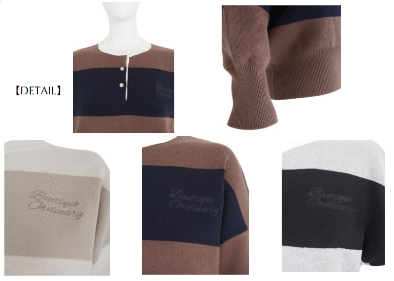 ラガーシャツをベースに、大人トラッドな雰囲気に仕上げたヘンリーネックニット。存在感のあるワイドボーダーが印象的で、クラシックなアイビースタイルを感じさせる1着です。胸元の刺繍がさりげないアクセントとなり、スタイリングに程よい存在感をプラスします。カジュアルからトラッドスタイルまで幅広く取り入れやすいアイテムです。同素材のスカートとセットアップコーデも可能です。