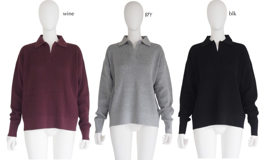 ワッフルスキッパーカラーニット