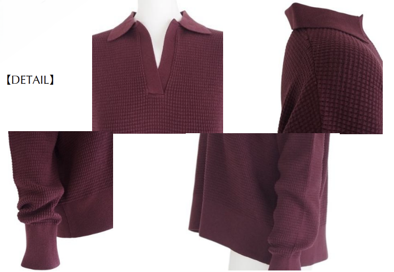 クラシックなポロカラーデザインをワッフル編みに落とし込んだプルオーバーニット。ゆったりとしたオーバーサイズとドロップショルダーで、着るだけでこなれ感のあるスタイルに。程よく開いたスキッパーネックが、カジュアルな中にも女性らしい抜け感を演出します。少し後ろに抜いた着方やレイヤードスタイルなど気分でアレンジが楽しめるアイテムです。