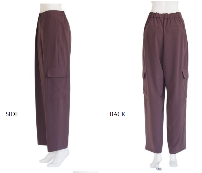 上品な素材で仕立てた綺麗目カーゴパンツです。フロントのタックがお腹まわりをさりげなくカバーし、後ろウエストはゴム仕様で快適な着心地を実現。程よくテーパードしたシルエットで脚のラインをすっきり見せつつ、カーゴポケットがデザインアクセントになり、カジュアル過ぎず洗練された印象に仕上げています。日常のさまざまなシーンに取り入れやすく、着心地とデザイン性の両立でワードローブの中で頼れる存在となる1本です。