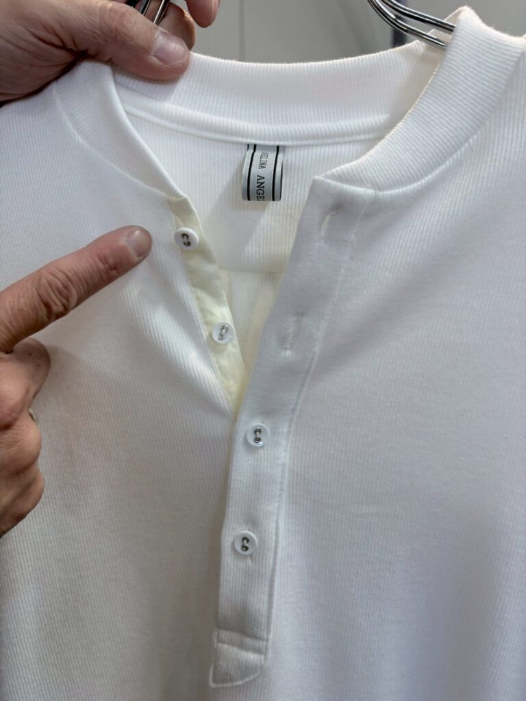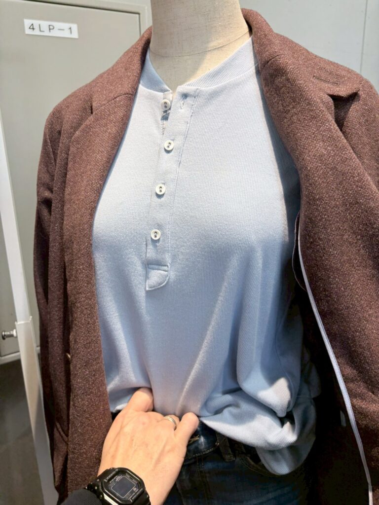 抜けで魅せる、ヘンリーネックトップス。
