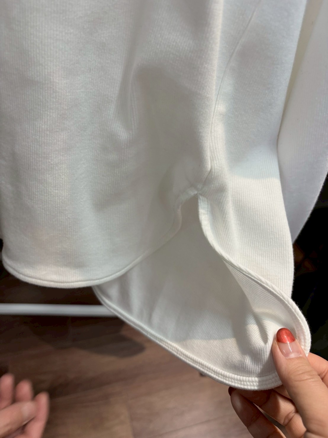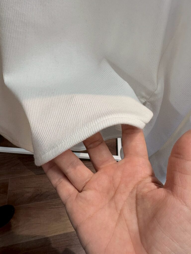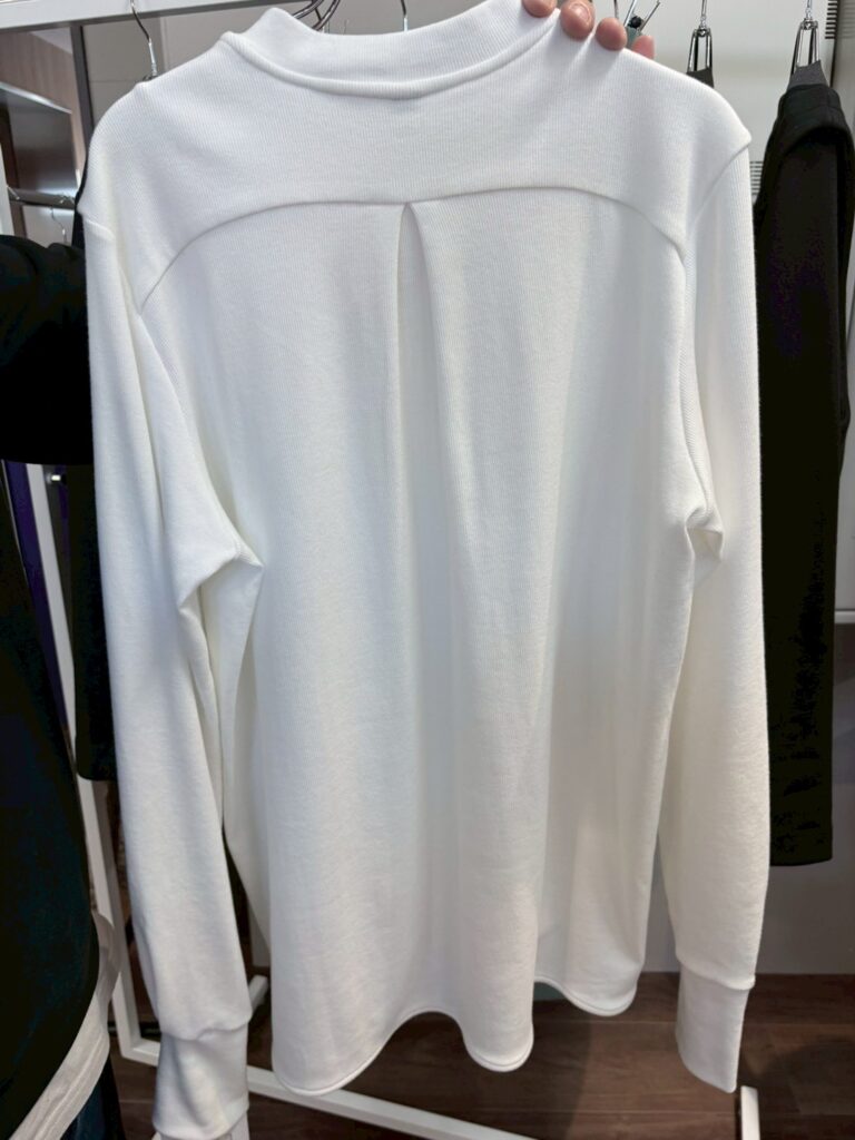 縦畝(うね)のあるリブ編みで適度な伸縮性があり、体にしなやかにフィットしながら快適な着心地をもたらす。