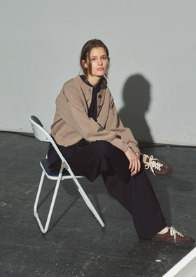 体にフィットしすぎず、離れすぎない絶妙なサイズバランスで、一枚着としてもインナーとしても活躍。セットインスリーブにすることで、カジュアルに寄りがちな印象を引き締め、端正な雰囲気に整える。