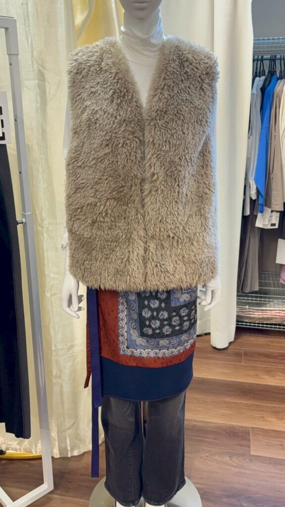 デニムの上にプラスするだけでコーディネートに奥行きが生まれ、シンプルな装いにアクセントを添えるアイテム。