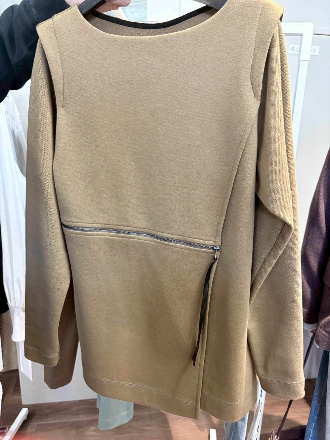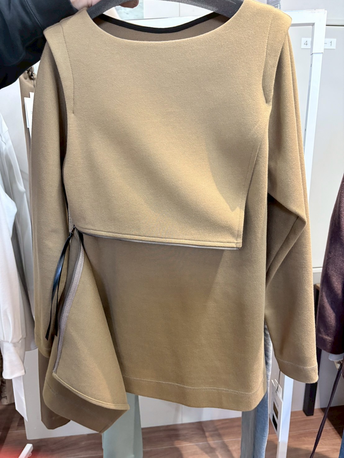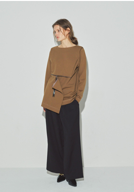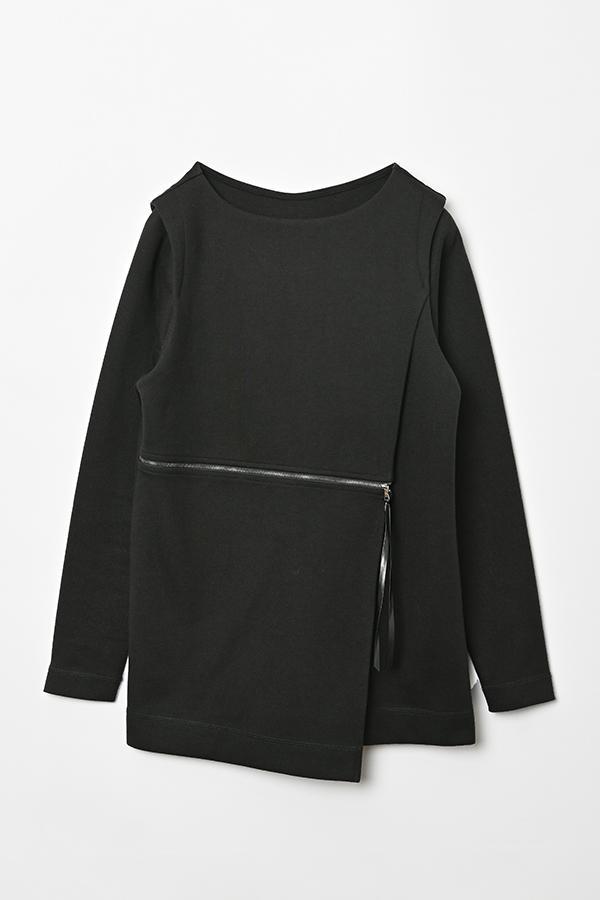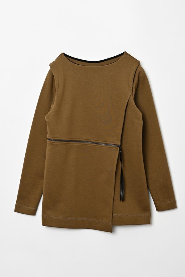 前身頃は二枚仕立てにし、ファスナーの開閉によってフォルムに変化をプラス。