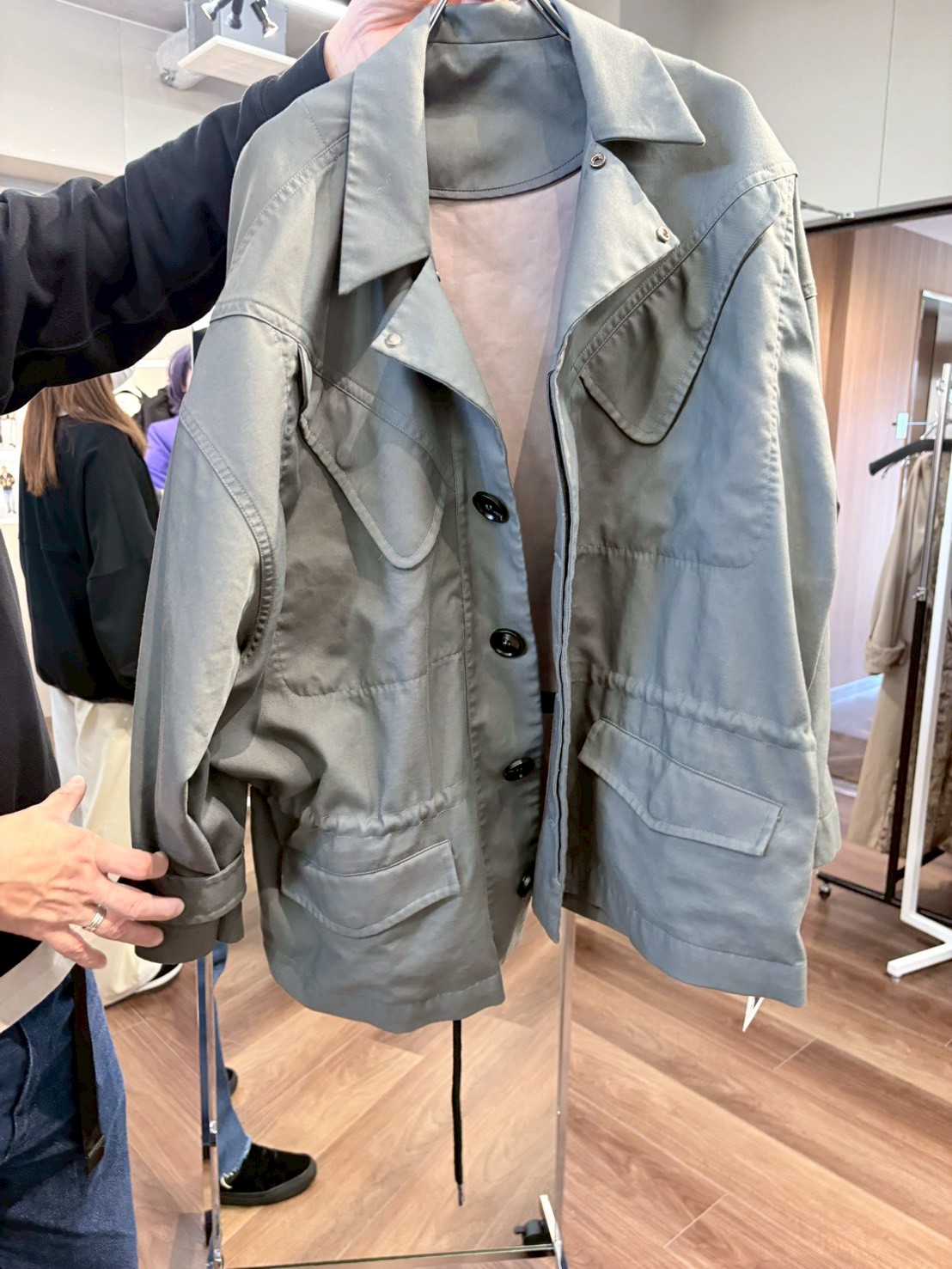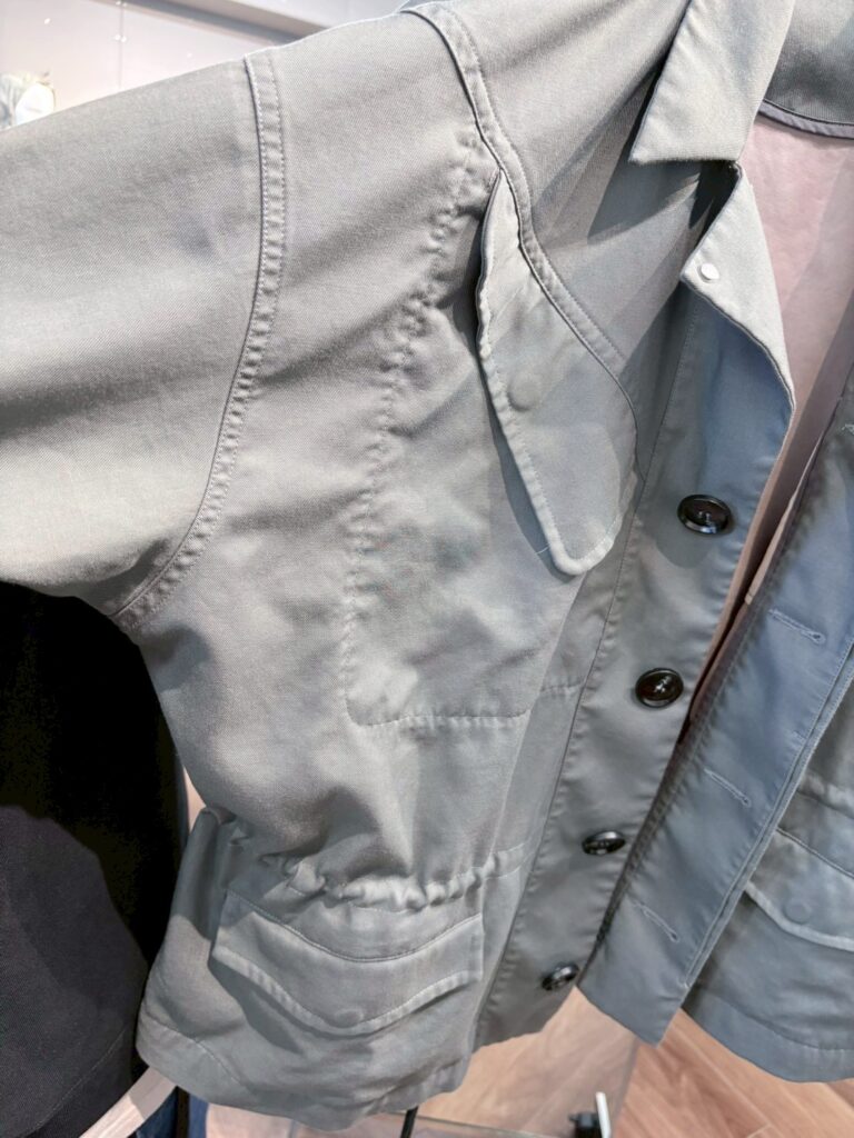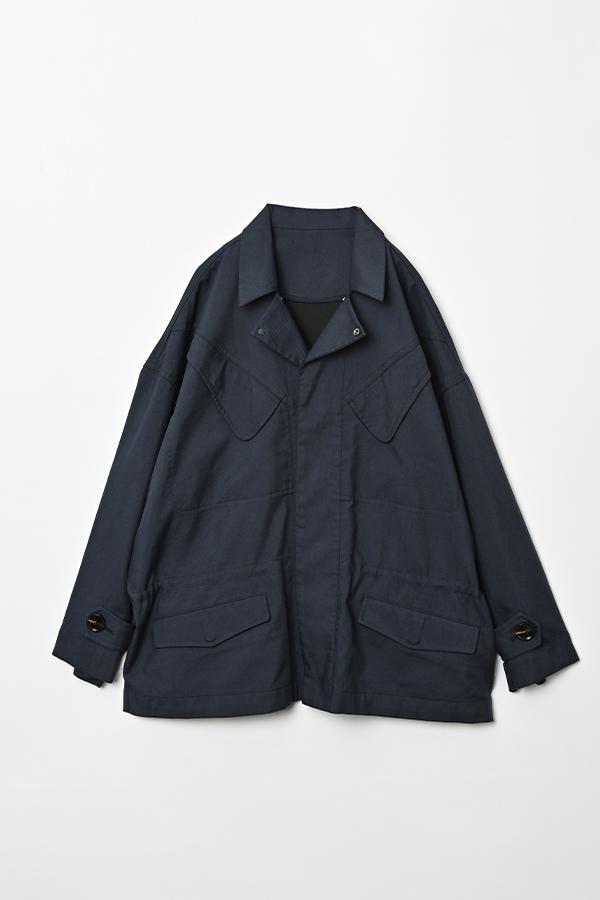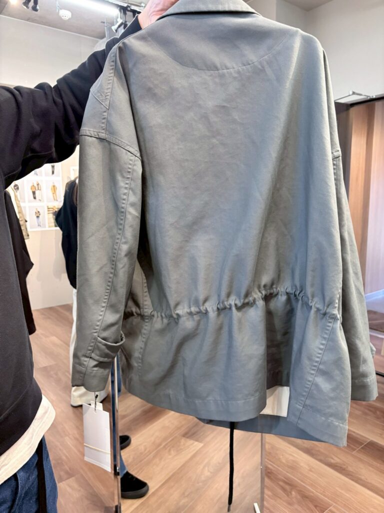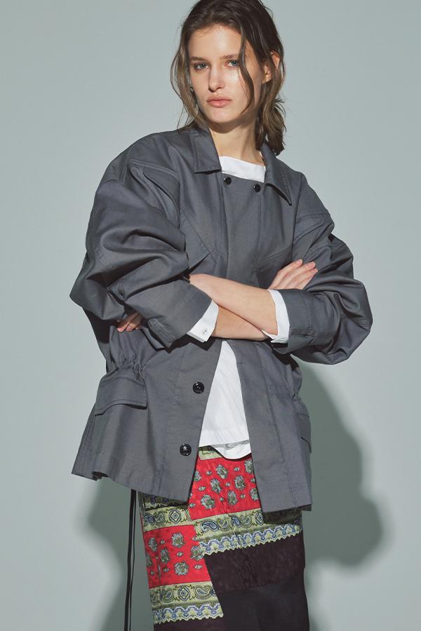 過度な切り替えや装飾は加えず、ディテールとシルエットで魅せるミニマルなデザイン。実用性から生まれたパーツを丁寧に活かすことで、無骨さの中に上品さを感じさせる一着。