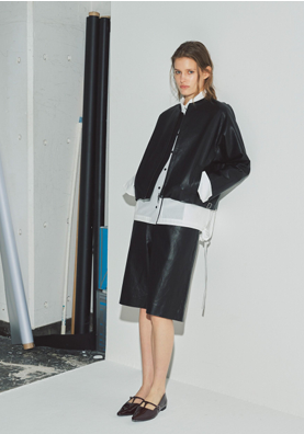 シンプルな中に構築的な工夫を重ねた、存在感のある一着。