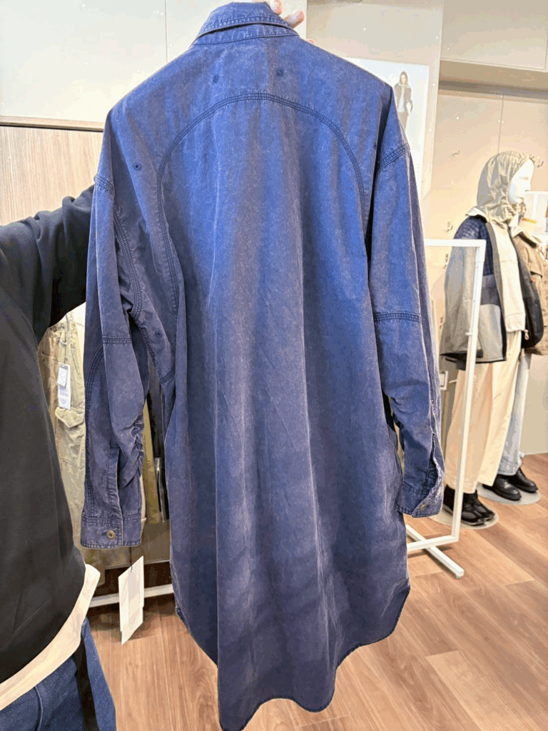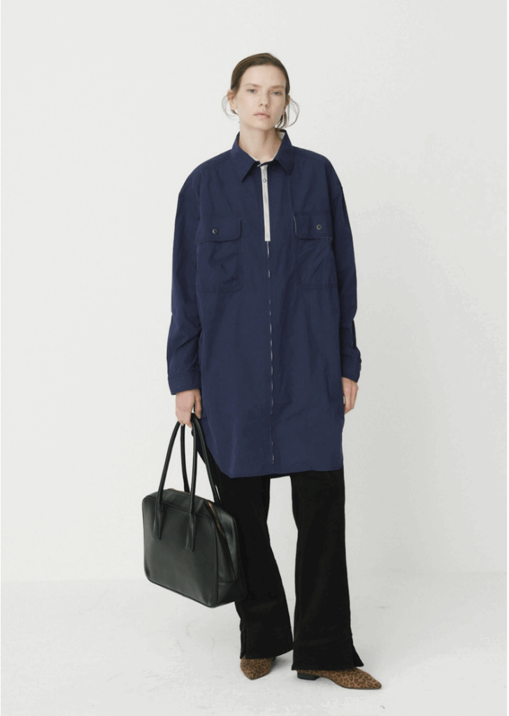 機能と違和感が静かに重なり合う、ニュアンスのあるロングシャツ。