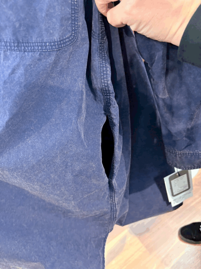 素材は、クタッと感のあるヴィンテージライクな風合いをイメージ。着始めから身体に馴染むやわらかさがあり、日常の動きに自然と寄り添う。内袖にはギャザーを施し、さりげないボリュームと動きやすさを持たせている。