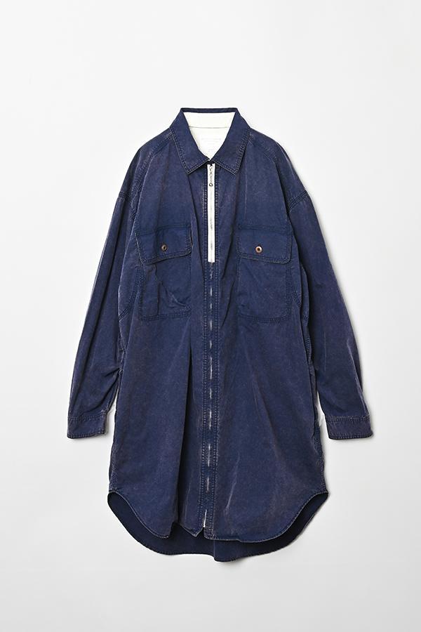 ハリ感のあるコットンウェザーにケミカル加工を施し、着古したような表情に。