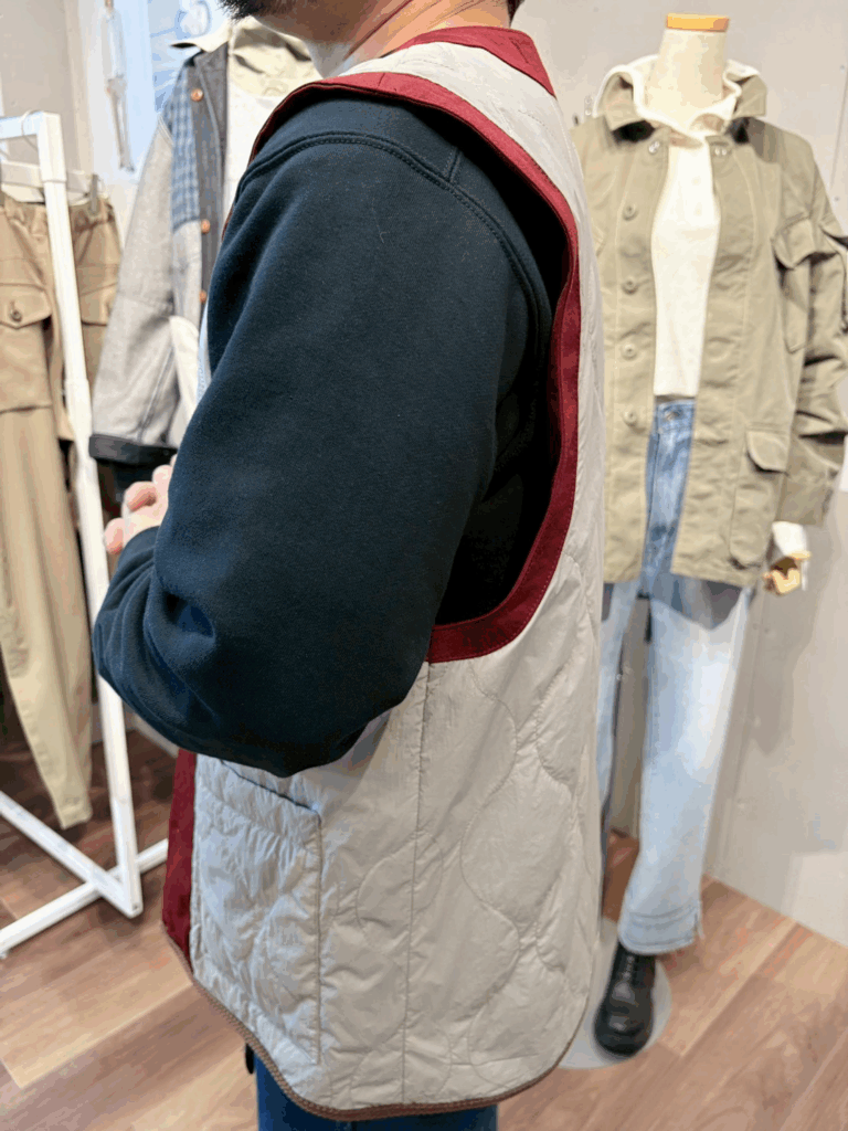 内と外で役割を変える、リバーシブル中綿ベスト。