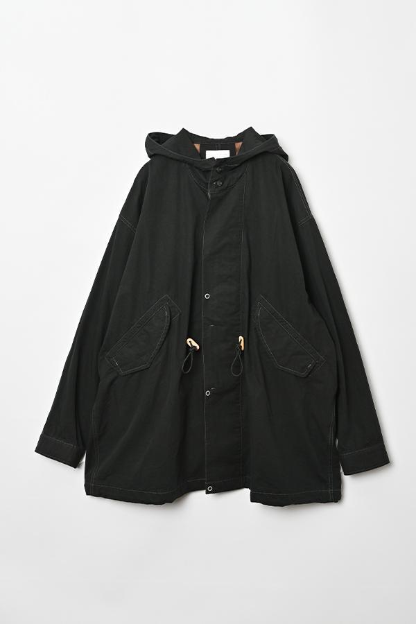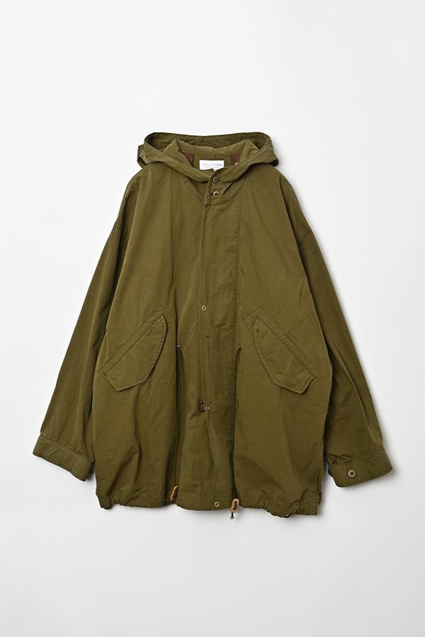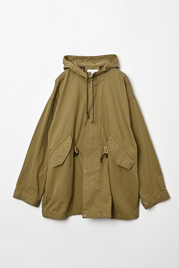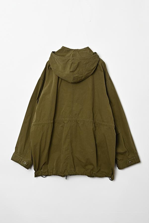 ゆとりを持たせたオーバーサイズシルエットで、ラフに羽織りながらもどこか整った印象に仕上げた一着。ベースはM-51パーカー。無骨なディテールを残しながら、ショート丈にすることで、今のスタイルに馴染むバランスへと再構築している。