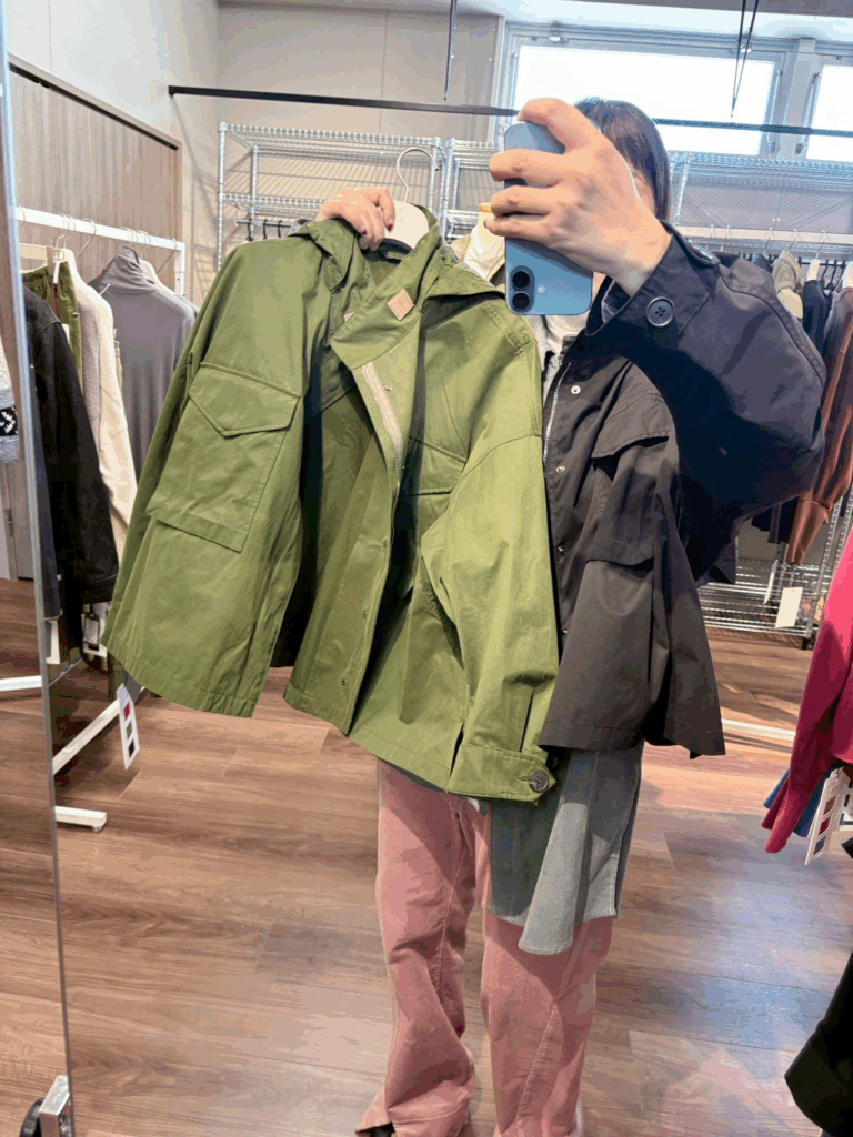 ミリタリーの背景を持ちながら、日常にやわらかく馴染むシルエットへと昇華した一着。
