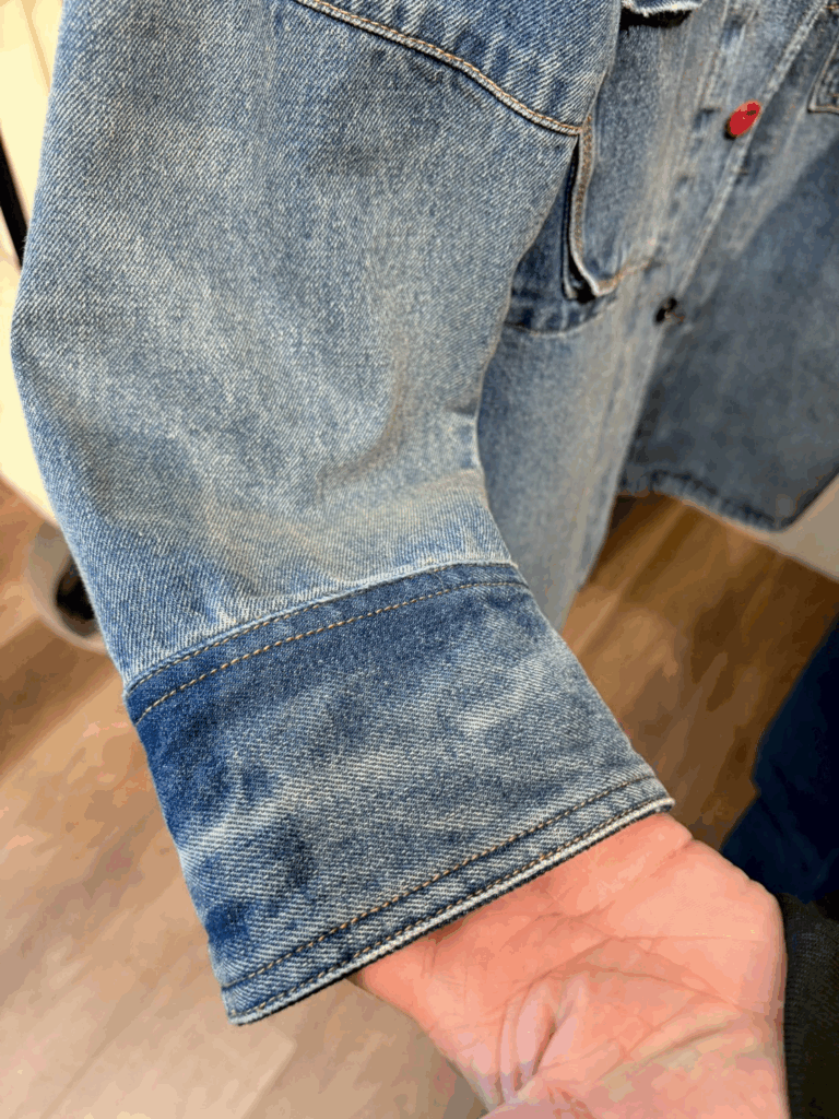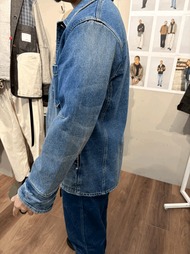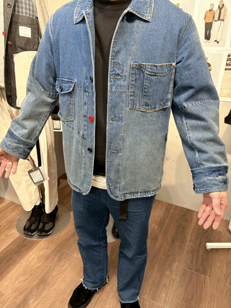 長く着込まれた中で生まれるアタリや風合いをイメージした加工を施し、最初から馴染んだような空気感をまとわせている。