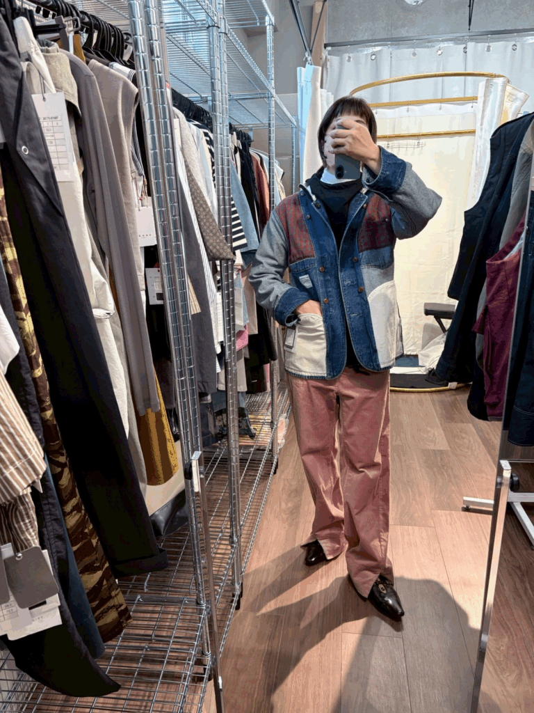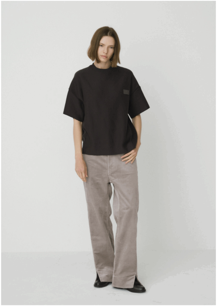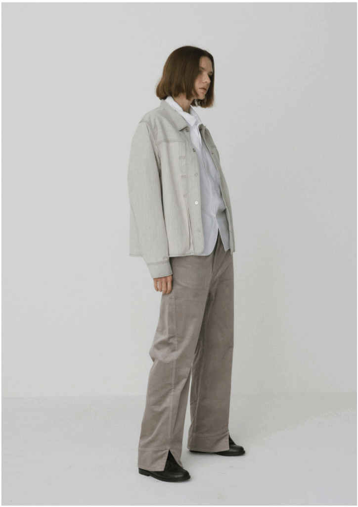 股上を深めに設定し、腰まわりはすっきりとタイトに整えたシルエット。