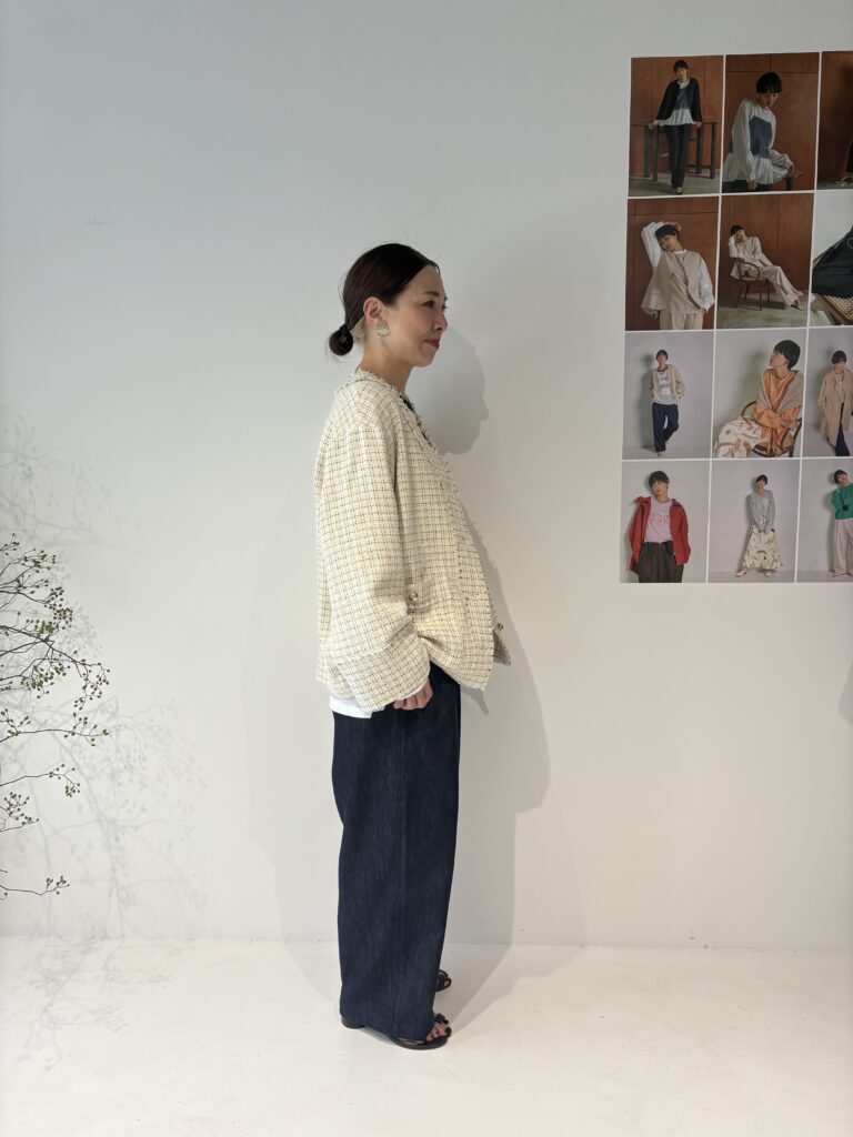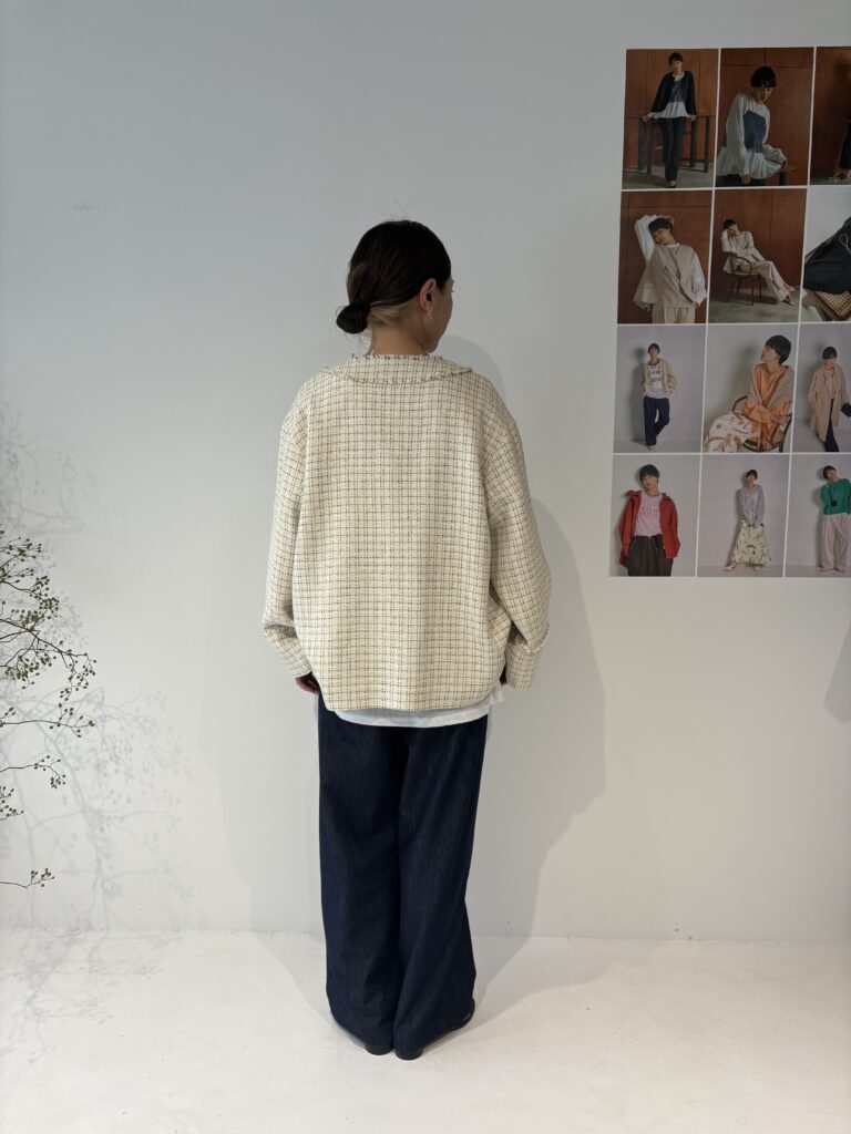 程よい厚みで軽やかな着心地で、ツイード特有の上品な素材感でオケージョンにもぴったりです。