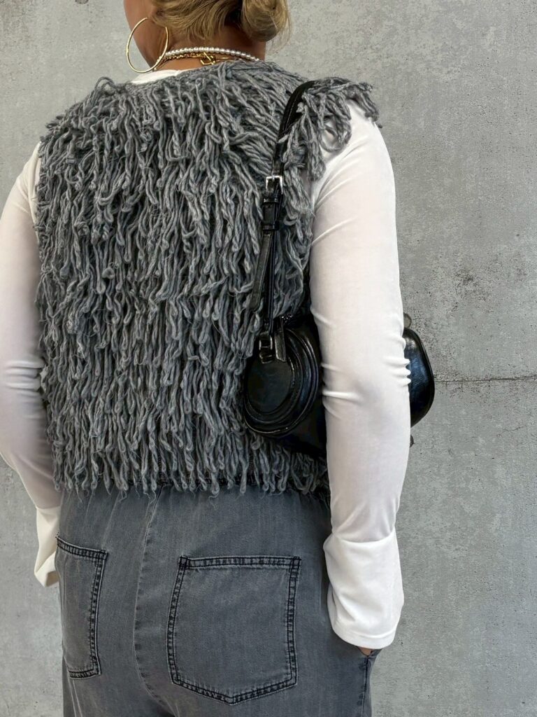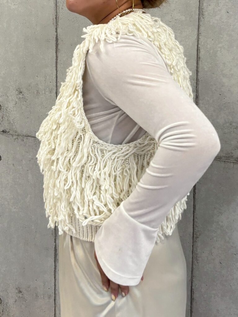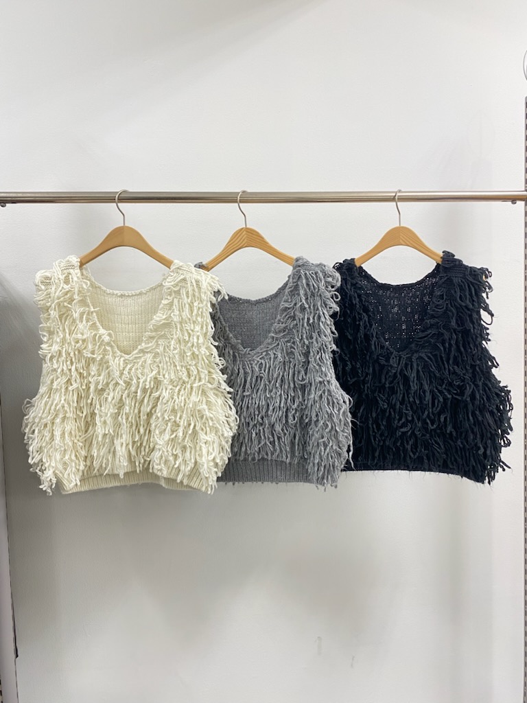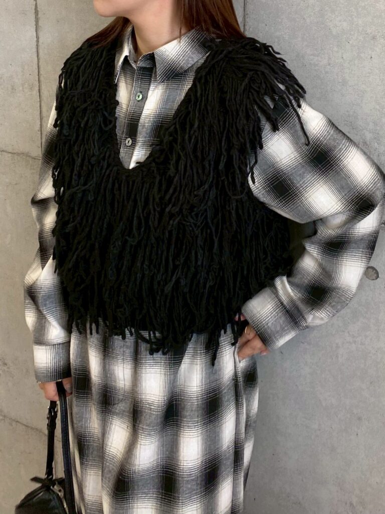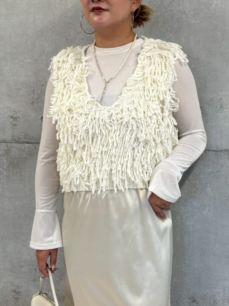 立体感のあるループ編みが特徴的な、存在感たっぷりのデザインベスト。ループ編みがフリンジのように見え、シンプルなコーディネートにプラスするだけでこなれた印象に仕上がります。インナーにはカットソーやシャツはもちろん、ワンピースの上からレイヤードするなど、幅広いスタイリングが楽しめるのも魅力。トレンドのクロップド丈で、ウエスト位置が高く見え、バランスよくスタイルアップ効果も◎。一枚で旬なレイヤードスタイルが完成する、着回し力抜群のアイテムです。
