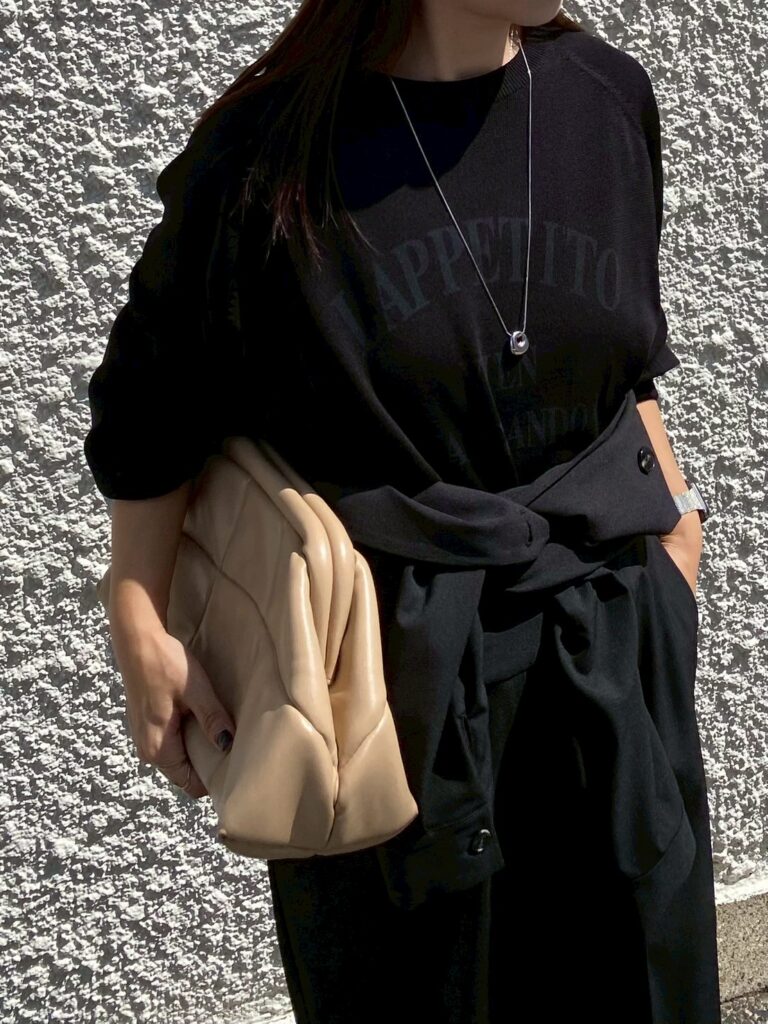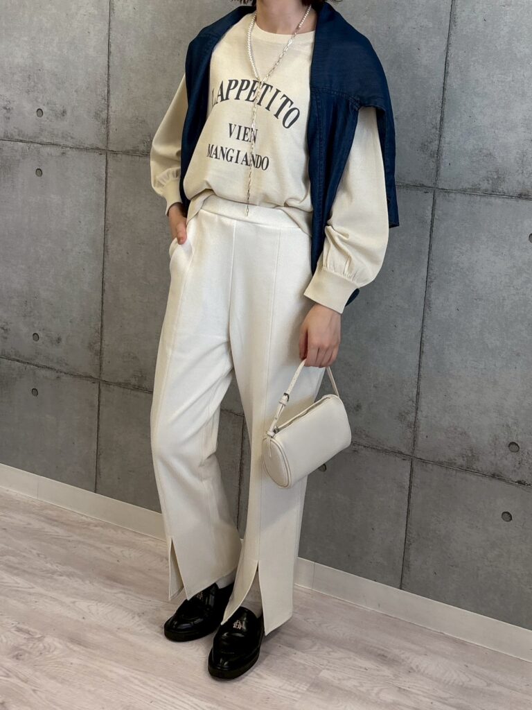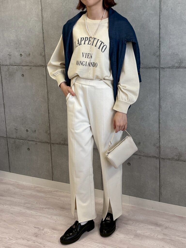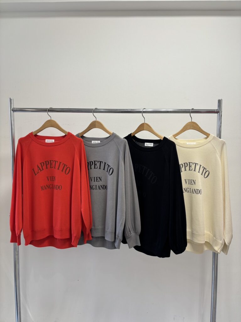 ロゴプリントが目を引くニットトップス。スウェットライクなラグランスリーブデザインで、リラックス感のある大人カジュアルスタイルを演出します。ゆったりとしたシルエットがこなれ感をプラスし、デイリーコーデにも取り入れやすい一枚です。前後差のある丈感で、さりげなくヒップラインをカバーしてくれるのも嬉しいポイント。着心地の良さとデザイン性を兼ね備えた、これからの季節にぴったりのアイテムです。