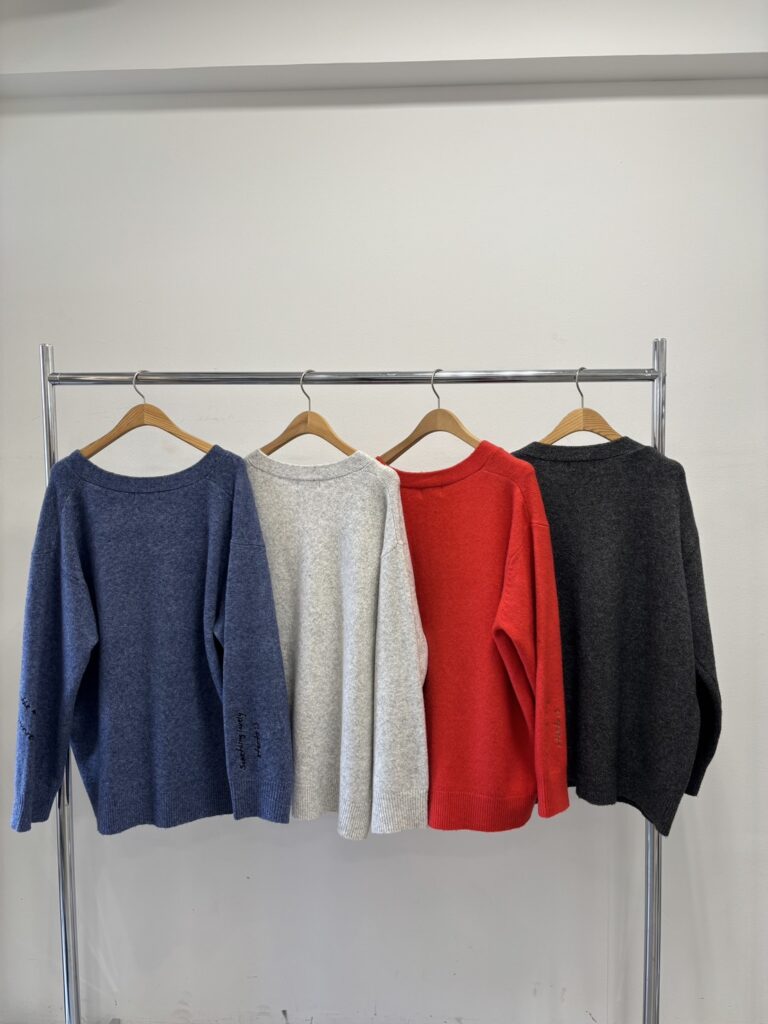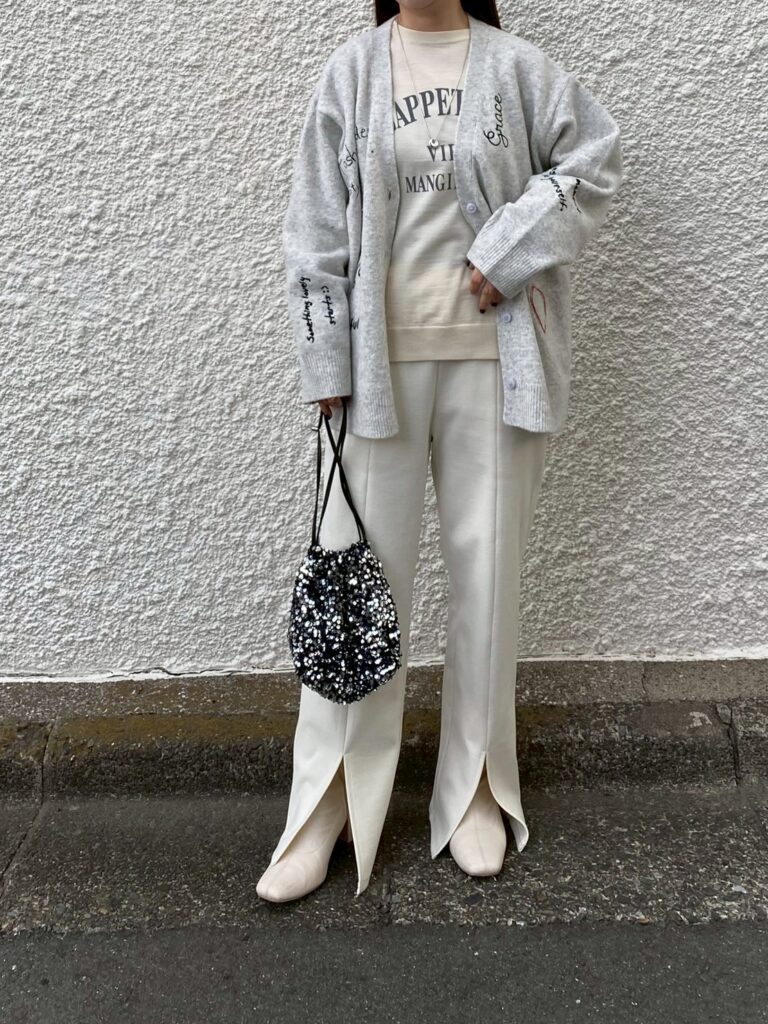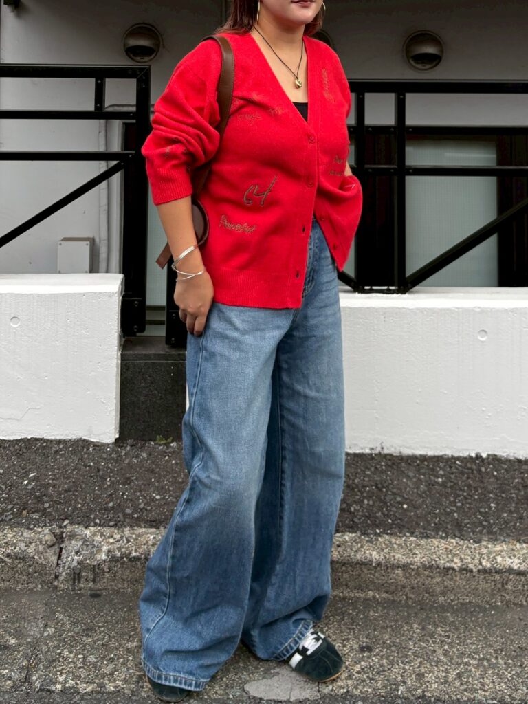 ロゴの配色はベーシックで抑えているので、子供っぽくなりすぎず、大人の遊び心が感じられるキャッチーなアイテムです。このカーディガンが主役になるようなコーディネートをぜひ楽しんでいただきたいです!