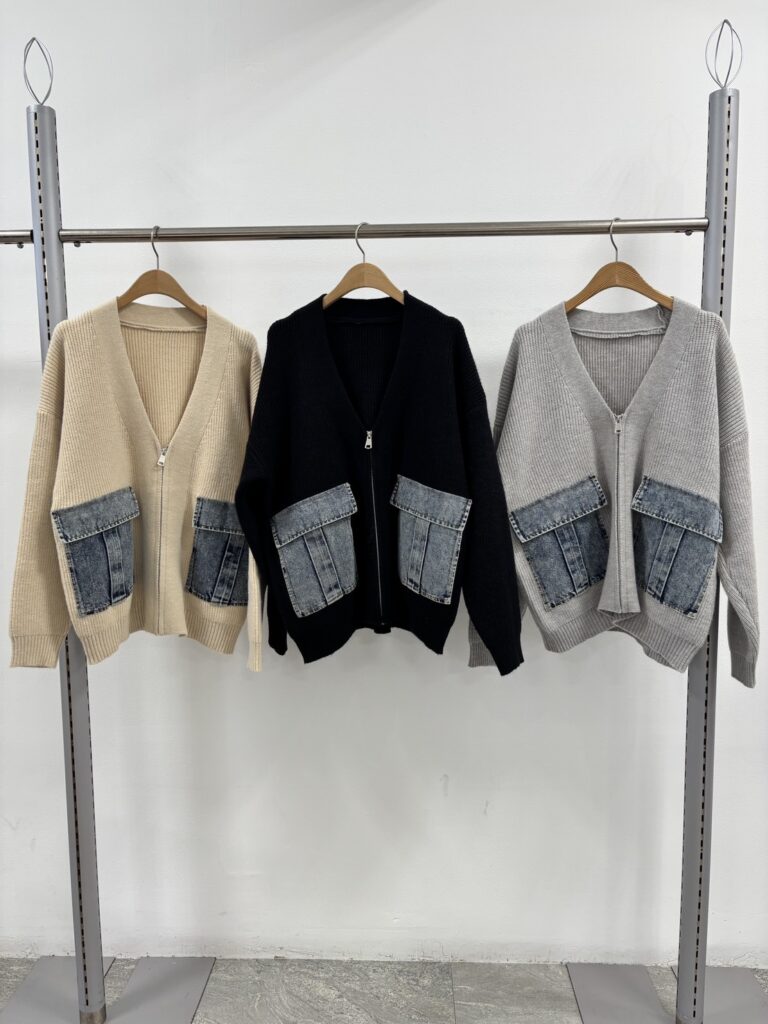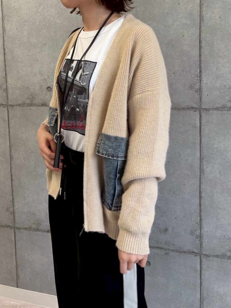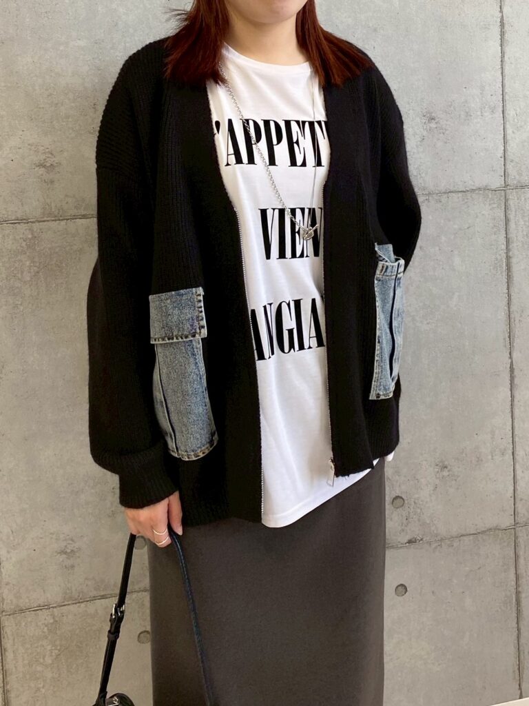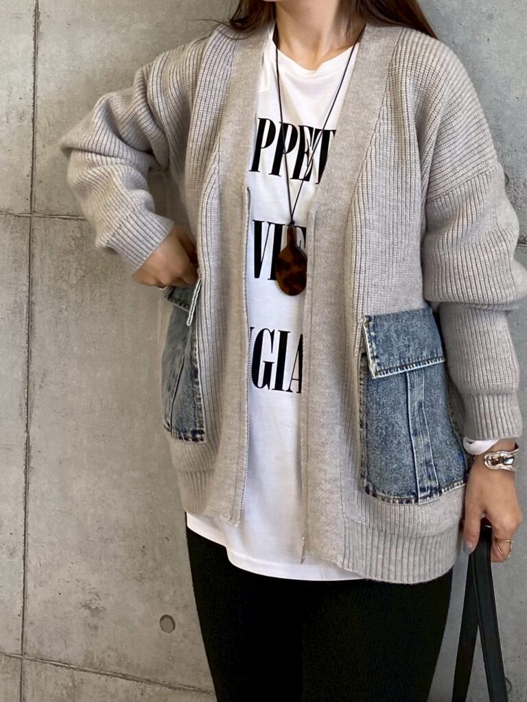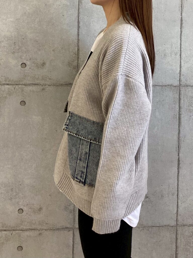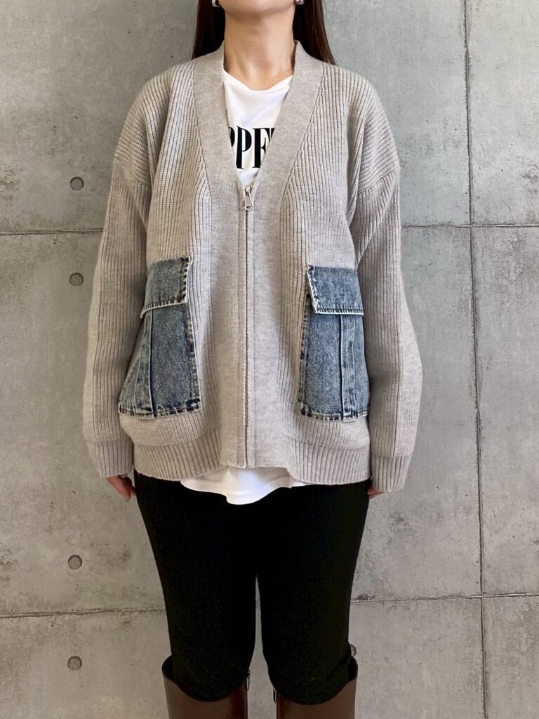 異素材デザインが目を惹く、大人カジュアルなジップアップカーディガン。もちもちとした肌触りの良いニット素材に、デニムポケットを組み合わせた異素材切り替えが目を惹くデザインカーディガン。インポートライクな雰囲気が漂い、シンプルながらも洗練された大人のカジュアルスタイルを演出します。前開きはファスナー仕様で、着脱もスムーズ。ややゆとりのあるシルエットが体のラインを拾いにくく、気になるヒップ周りもさりげなくカバーしてくれるのも嬉しいポイントです。一枚でサマになる主役級アイテムとして、デイリーにもお出かけにも活躍してくれる一着です。